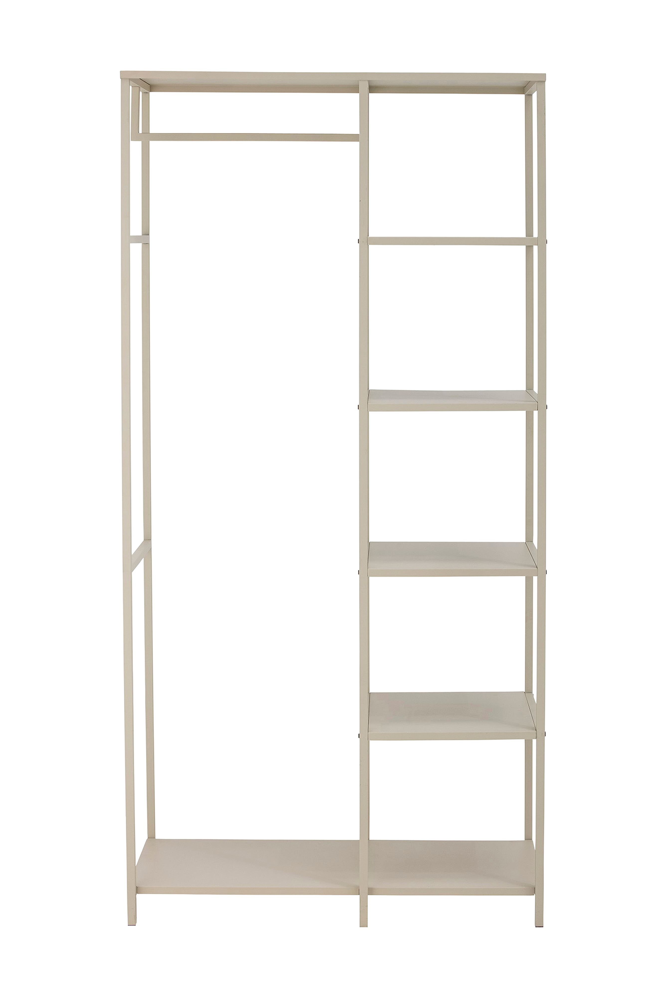 valde klesstativ fra bloomingville er den ideelle løsningen for å skape en moderne garderobe. Det er laget av metall i en vakker grå nyanse og passer sømløst inn i ethvert hjem. Med en praktisk hengestang for klær og fem faste hyller gir det rikelig med oppbevaringsmuligheter. Avstanden på 33 cm mellom hver hylle gir plass til alt fra sko og sammenbrettede klær til pyntegjenstander. L90xh183xw40 cm