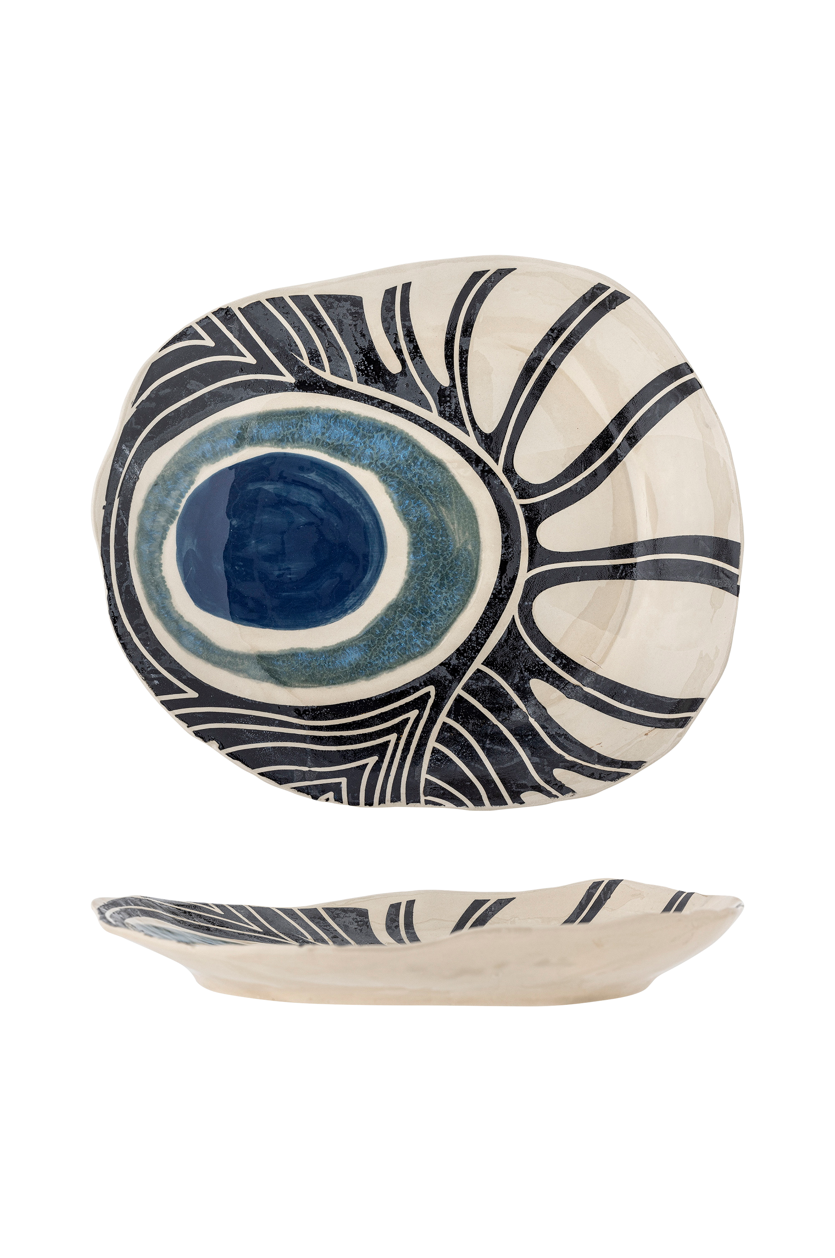 yamato fra creative collection er et særpreget og vakkert brett laget av steintøy med et fengende håndmalt mønster i rolige blå nyanser. Perfekt som serveringsbrett og til dekorasjon. Hvert fat blir unikt, ettersom hvert penselstrøk gir et personlig preg og skaper små variasjoner i designet. Dimensjon: l31xh4xb26,5 cm