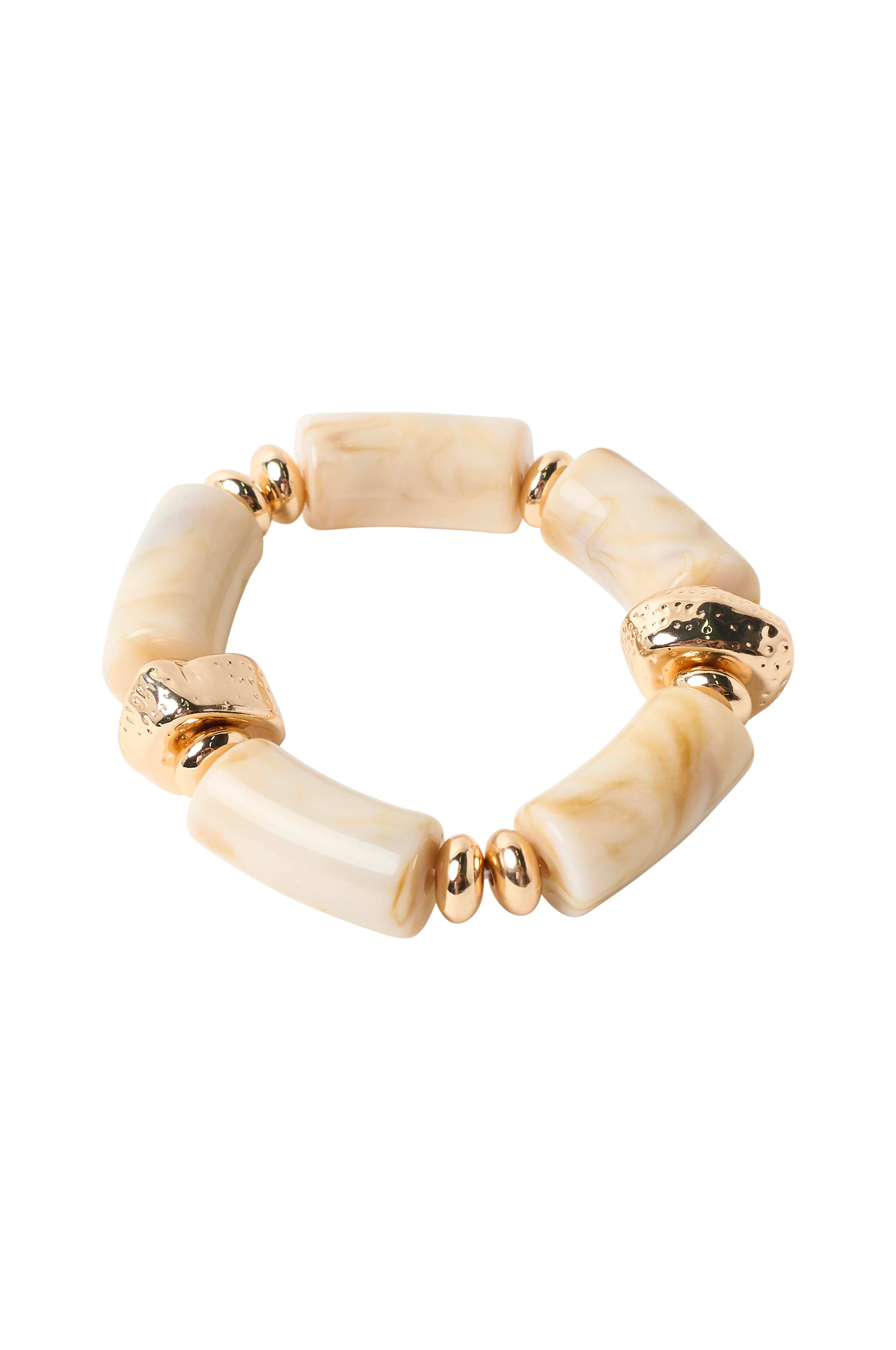 • Armbånd med elastisk passform• Marmorerte perler i harpiks• Gullfargede perler i sinklegering• Nikkelfri
