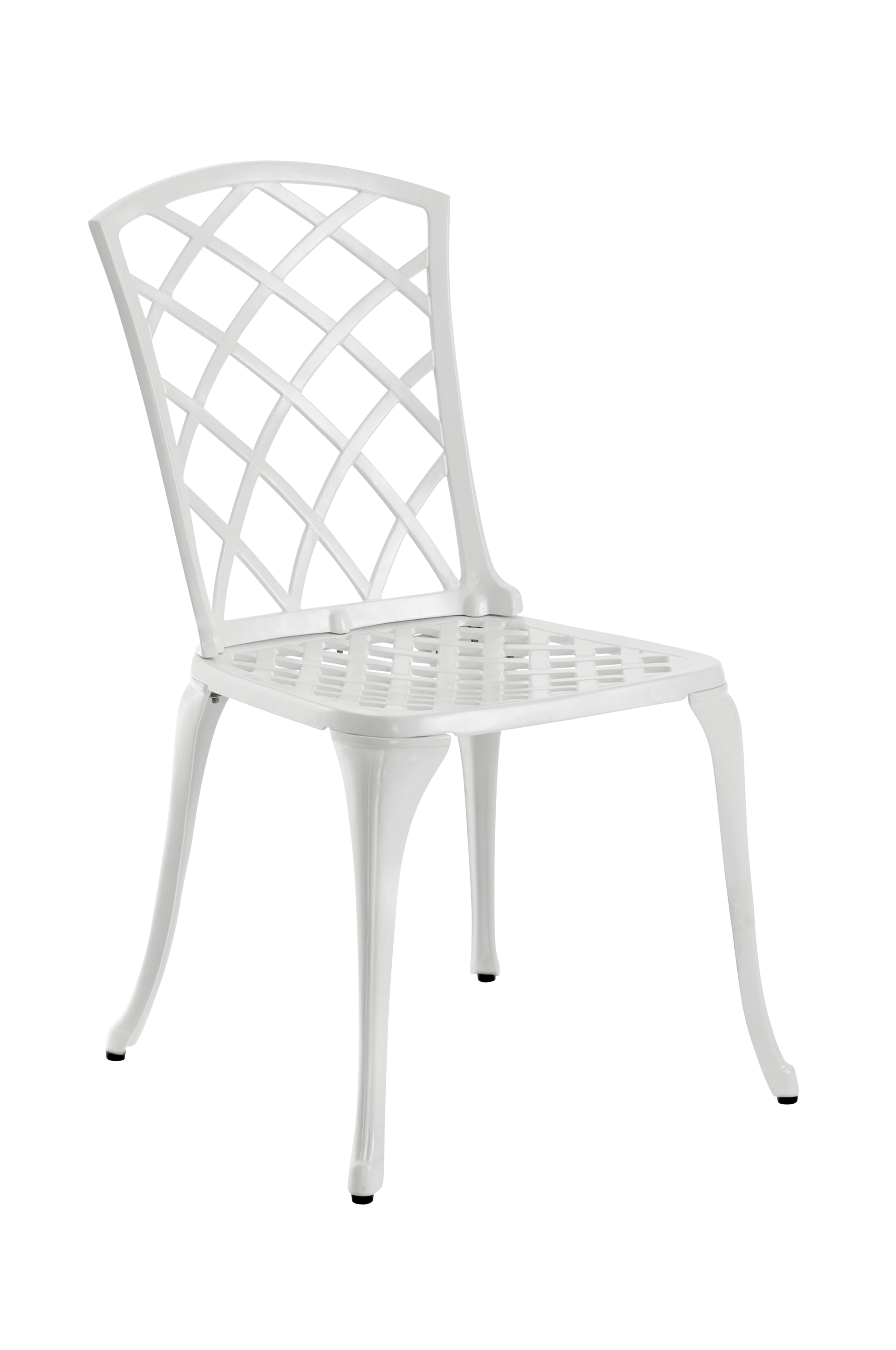 Tidløs stol i støpt aluminium som ikke ruster. Høyde 87, bredde 51, dybde 59 cm. Sittehøyde 43 cm. Enklere montering.