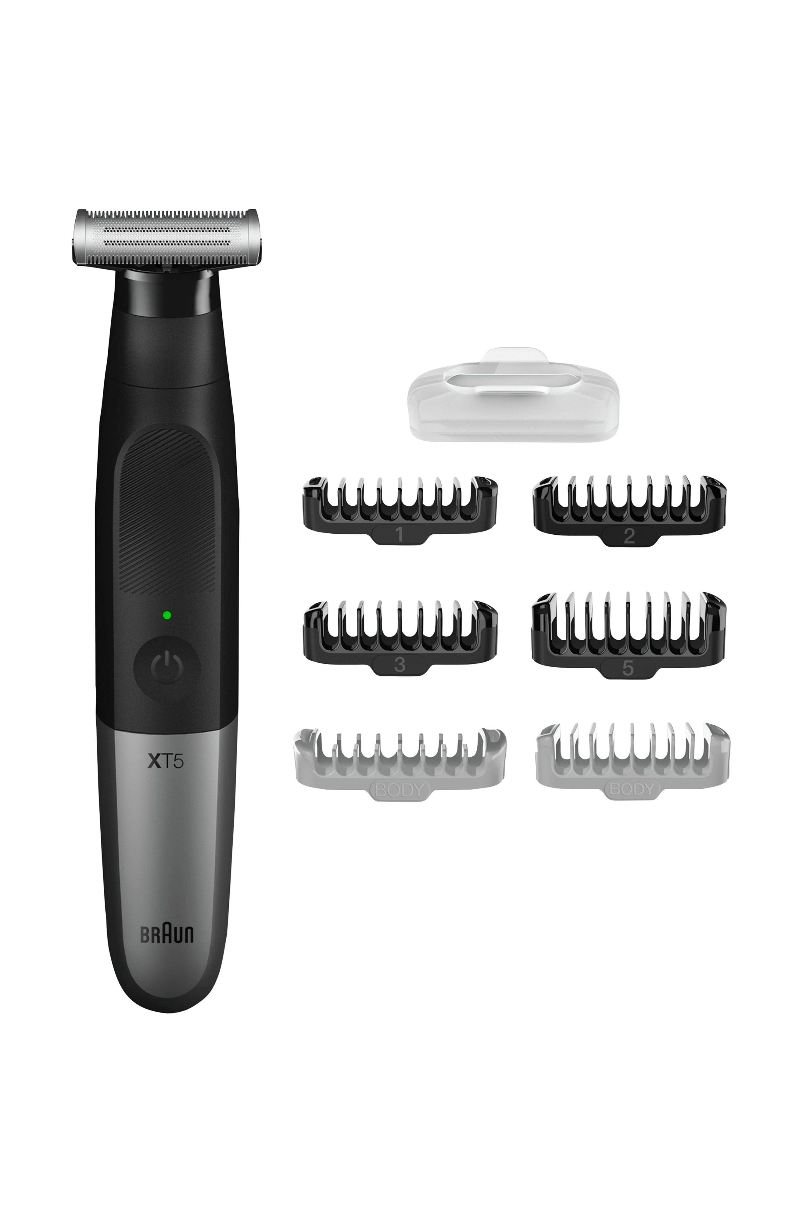 Braun Series XT5 er et alt-i-ett-apparat for menn med skjeggtrimmer, kroppstrimmer, og barbermaskin.