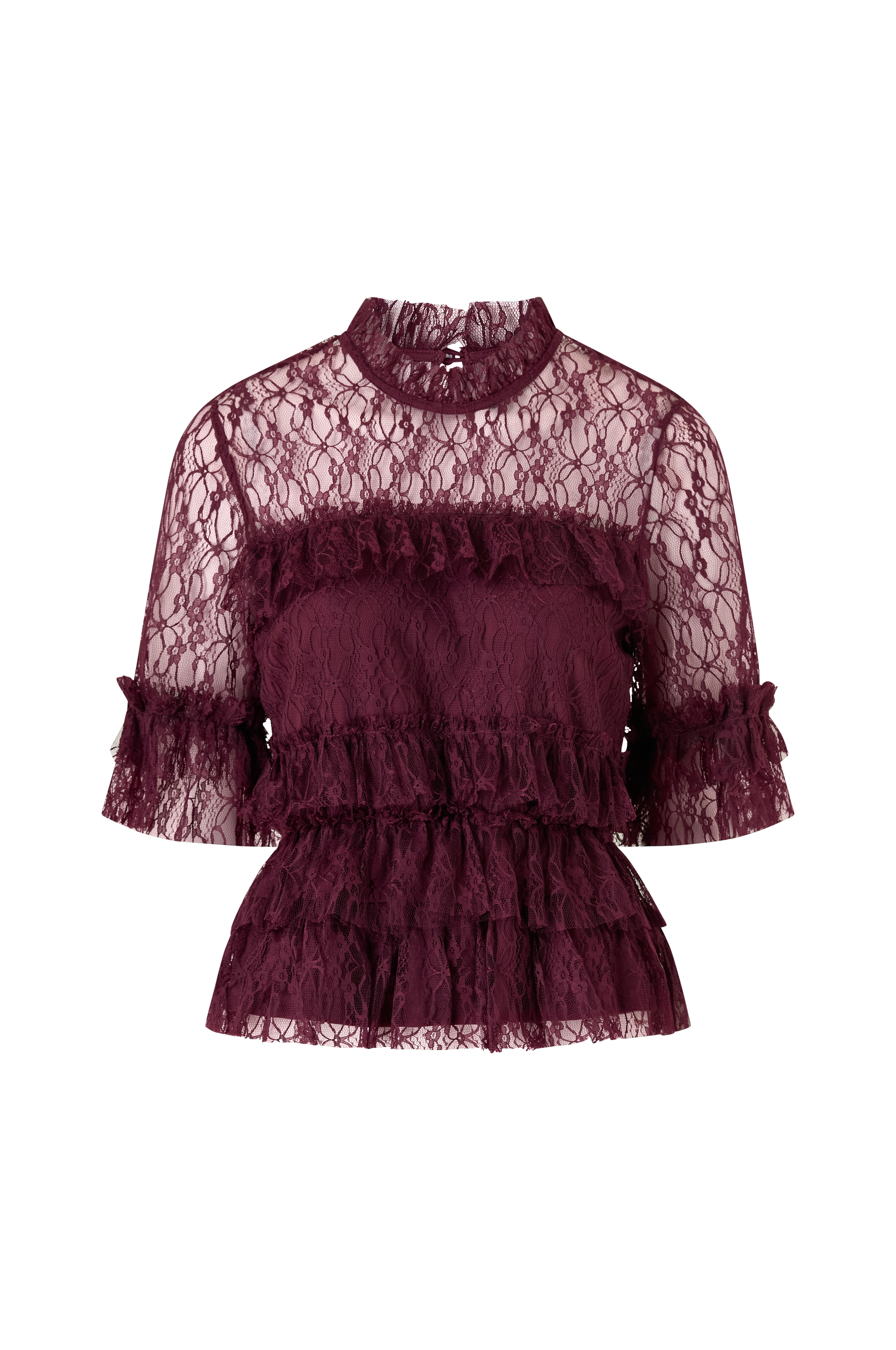 • Bluse i blonde med volangdetaljer
