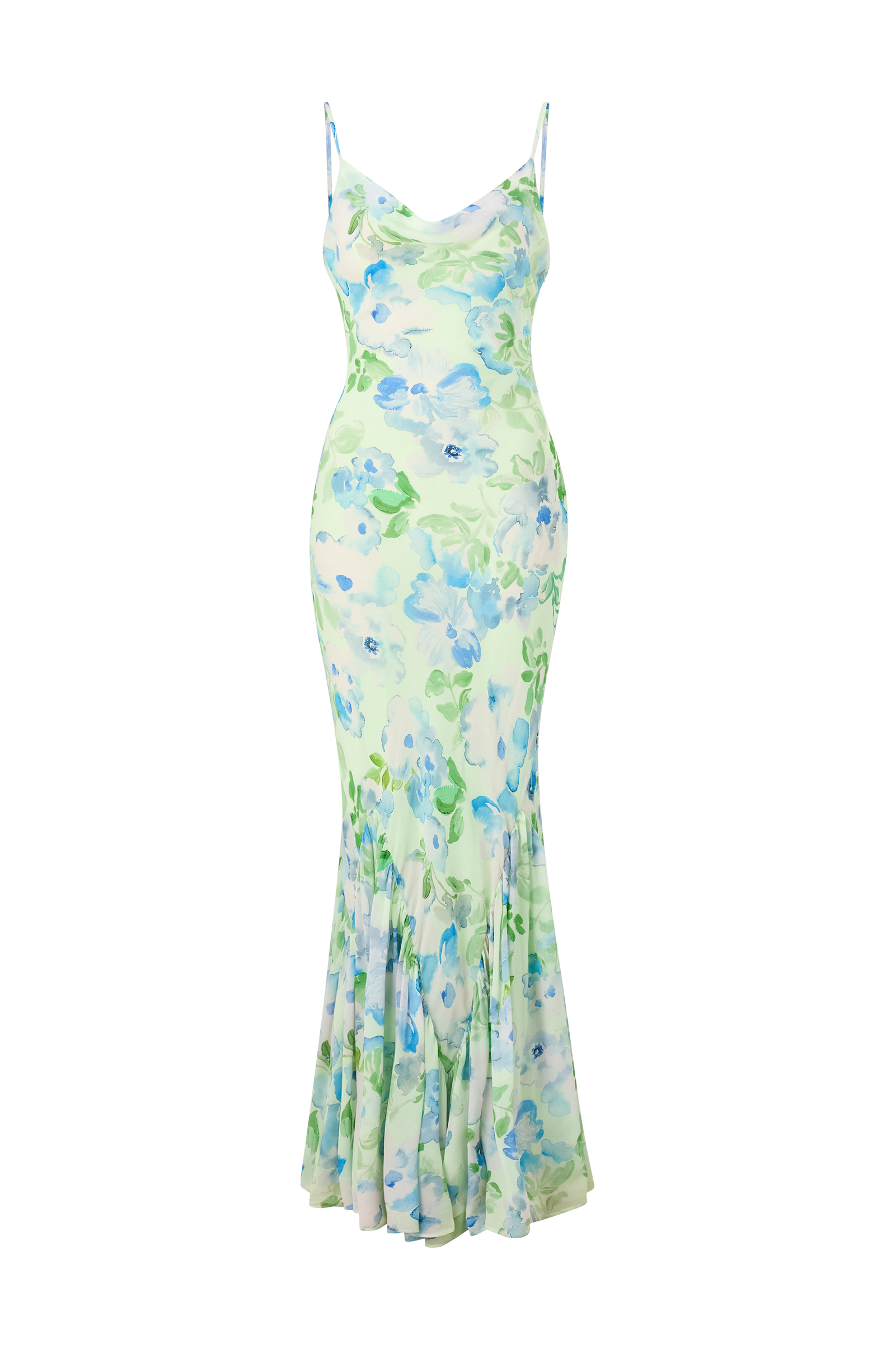 • Lang, ermløs kjole i chiffon• Justerbare skulderstropper• Drapert hals• Skjult glidelås i ene siden• Volanger i nedre kant• Lengde: 152 cm i størrelse S