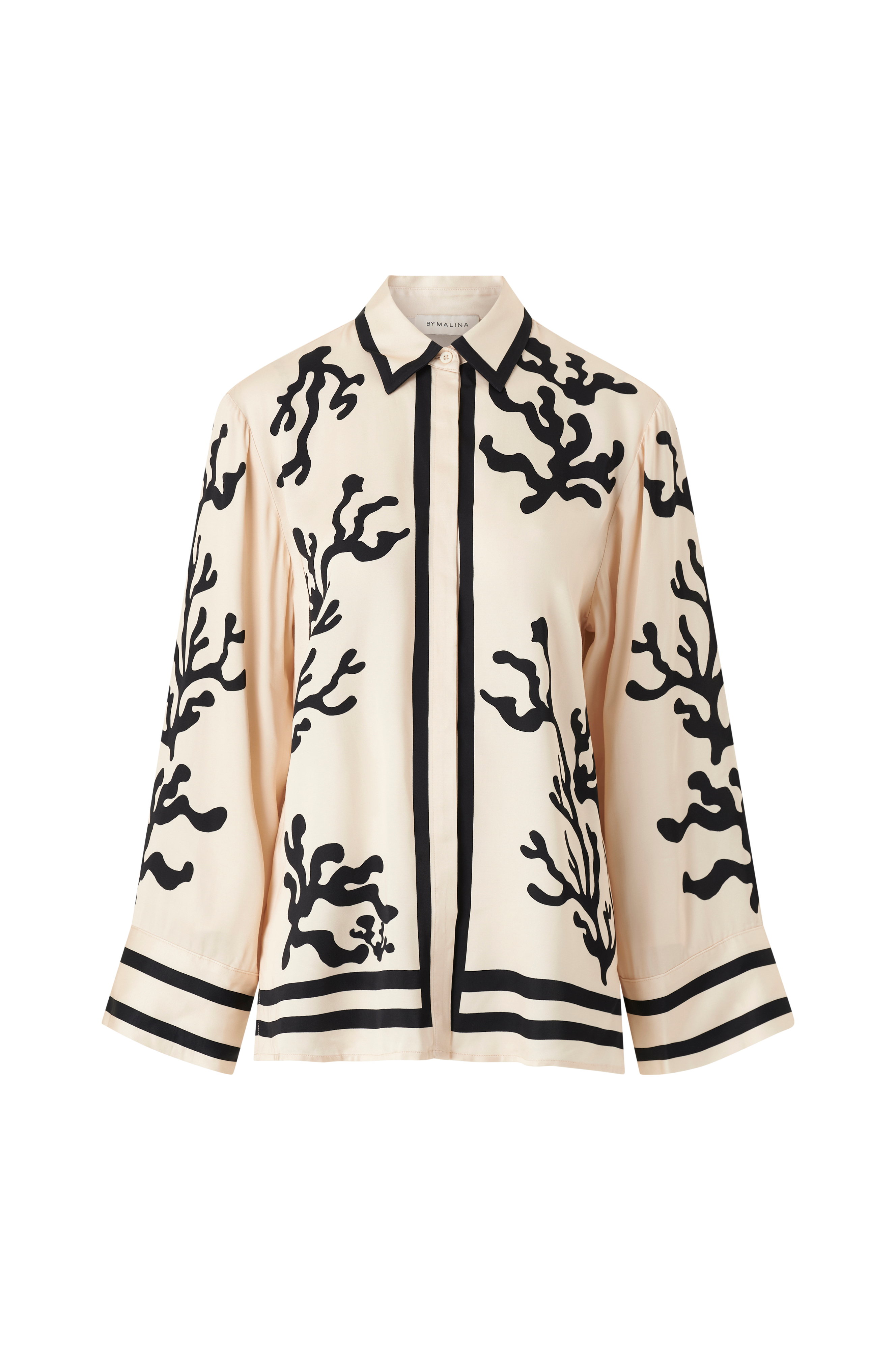 • Skjorte i sateng• Skjulte knapper foran• Brede ermer