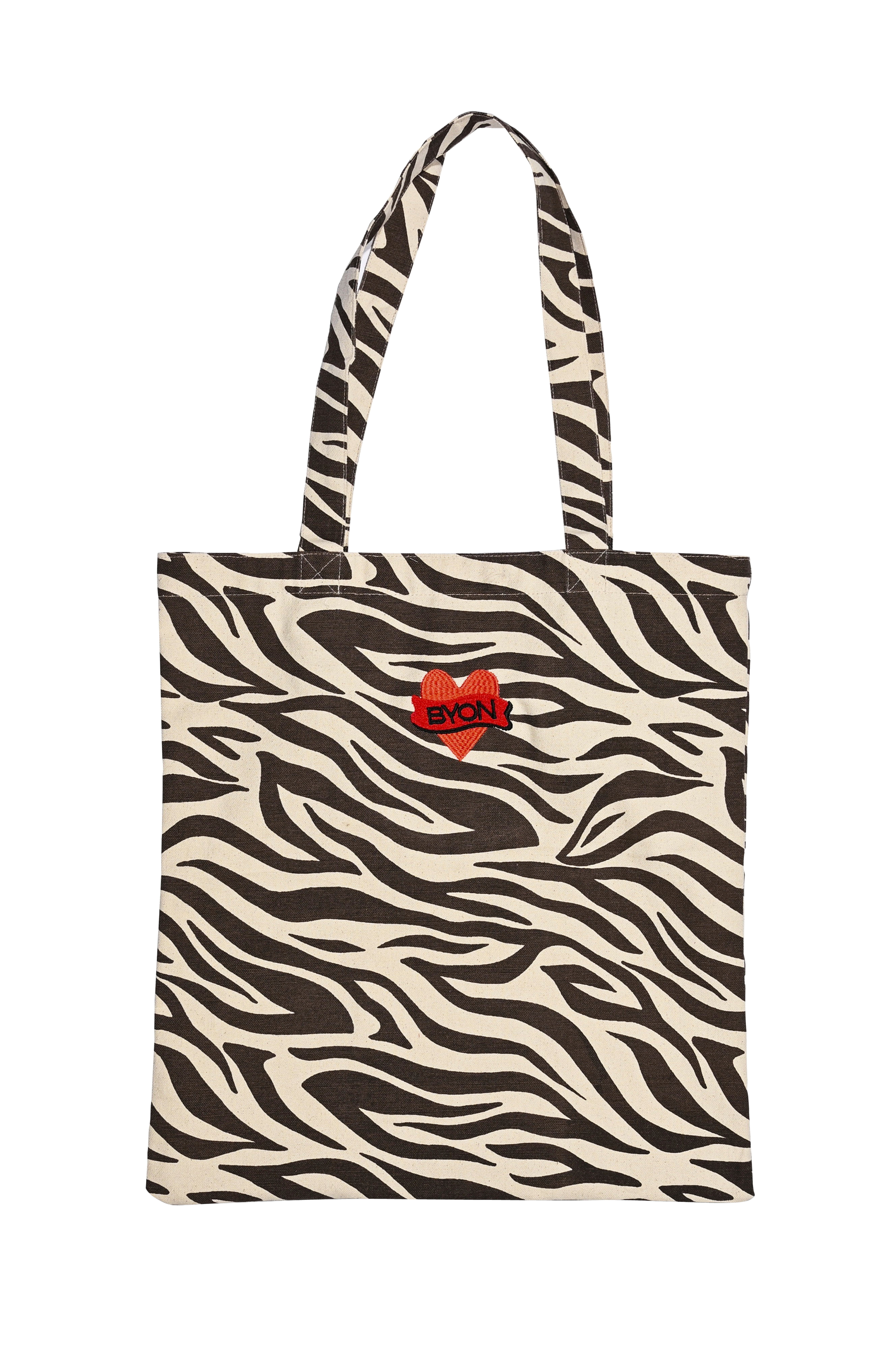 Anima er den perfekte bærevesken i stoff, som kombinerer både funksjon og lekenhet. Den har et slående zebra -mønster i brunt og kremfarget, prydet med et rødt, vintageinspirert Byon-hjerte. Den er laget av økologisk bomull og har to sett med håndtak i ulike lengder for ekstra bekvemmelighet, og er en veske du vil ha med deg på alle shoppingturer. Finnes i to forskjellige mønstre og farger. Størrelse 40 × 44 cm. Design Byon Studio.
