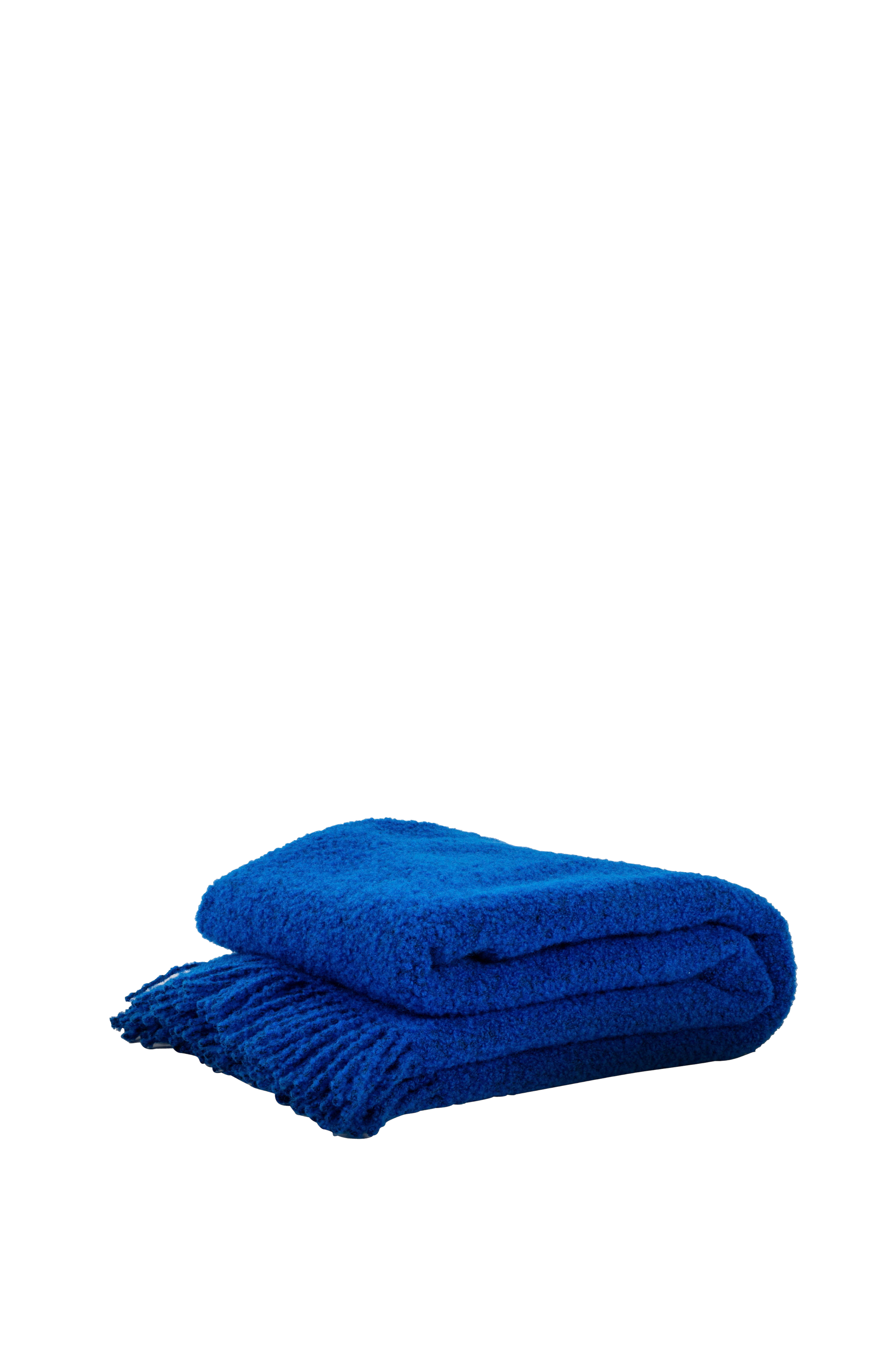 Dette teppet har en utrolig luksuriøs følelse og vil sette et herlig preg på ethvert hjem, uansett om du er innendørs eller utendørs. Det er varmt og behagelig, men også vakkert å henge over sofaen med sine frynser. Teppet er laget av 80 % ull og 20 % polyester. Det er et bouclégarn som har små eller store løkker som gir garnet volum og skaper et ekstra ullent og varmt produkt uten at det går på bekostning av lettheten. Finnes i en kjepphøy blåfarge som lyser opp atmosfæren, eller i en varm lakserosa tone som tilpasser seg omgivelsene. Begge tonene får oss til å tenke på havets farger. Sjenerøs størrelse på 130x170 cm. Kun renseri!