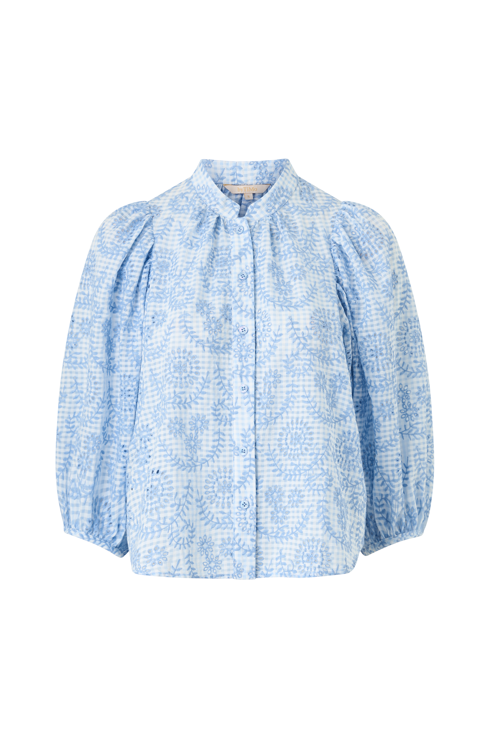 • Brodert hullmønster• Rund hals• Knapper foran• Ballongermer 3/4 lang