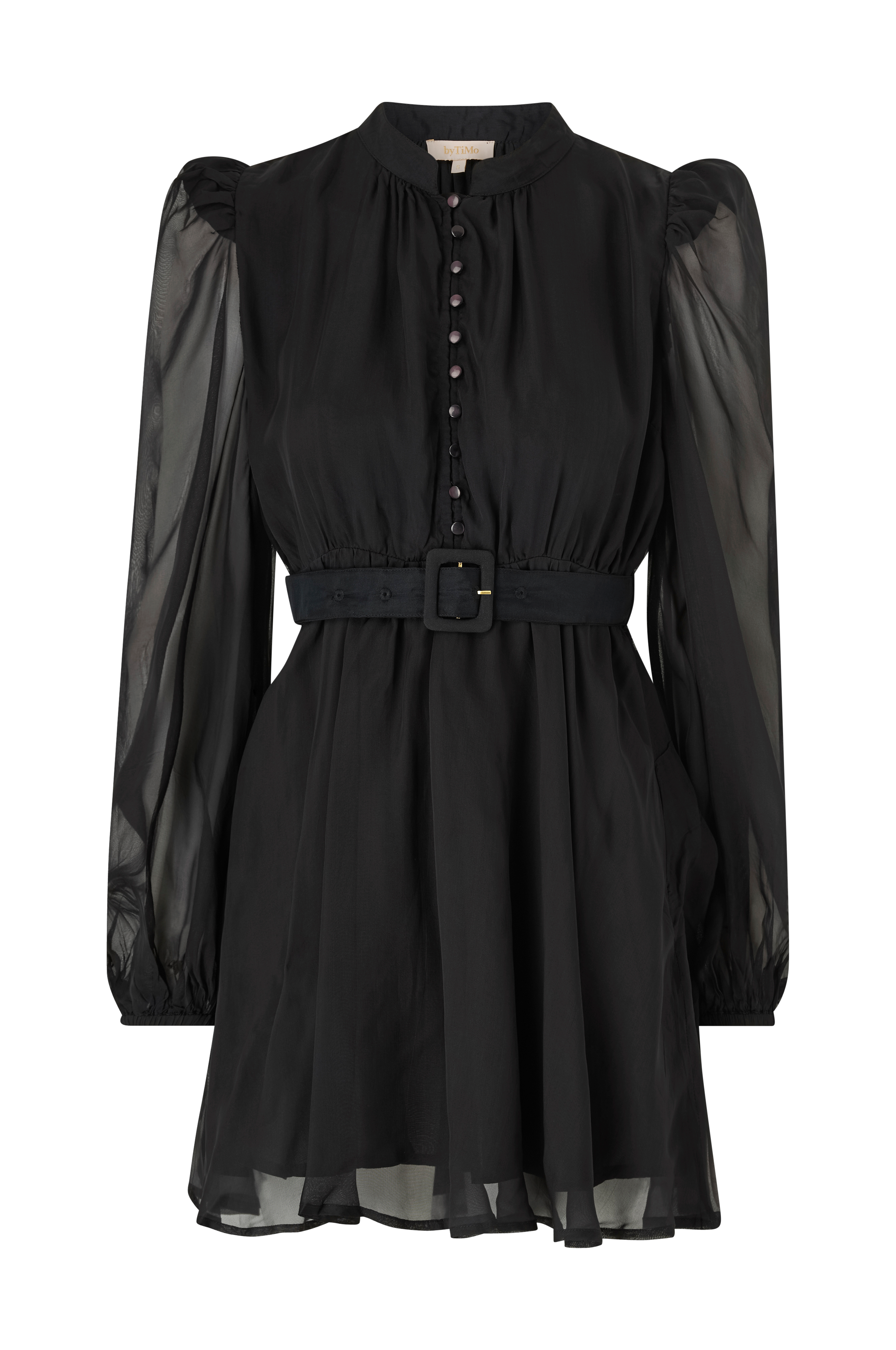 • Kort, fôret kjole i chiffon• Rund hals med lang frontknepping• Lange ballongermer med gummistrikk i ermeslutten• Gummistrikk ved midjen• Avtakbart belte• Glidelåslukking i ene siden• Utsvingt skjørt• Lengde: 87 cm i størrelse S