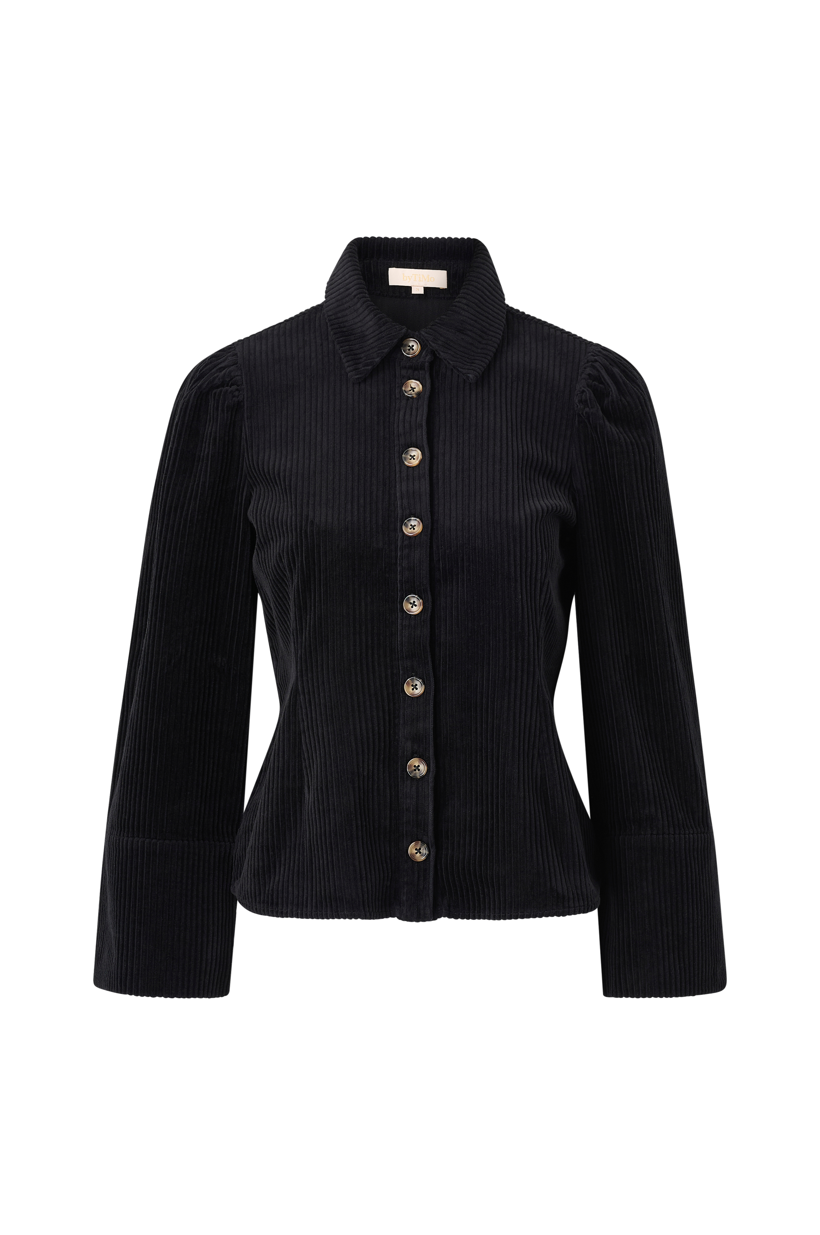 • Skjorte i cord med brede puffermer• Innsnitt ved midjen• Avrundet hem