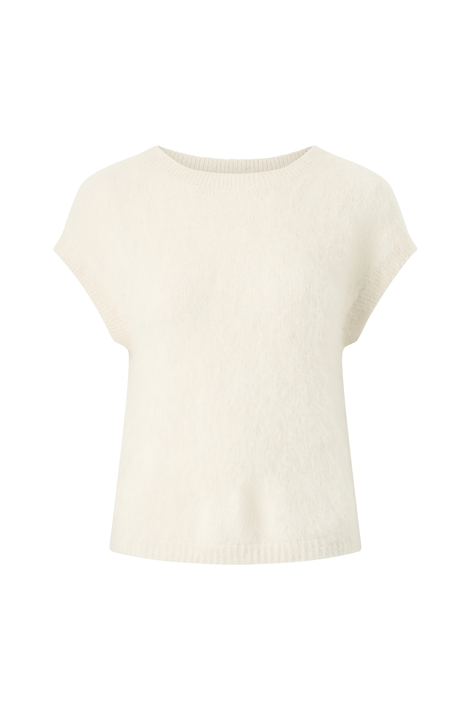 • Myk, håret vest i alpakkablanding• Rund, ribbet hals