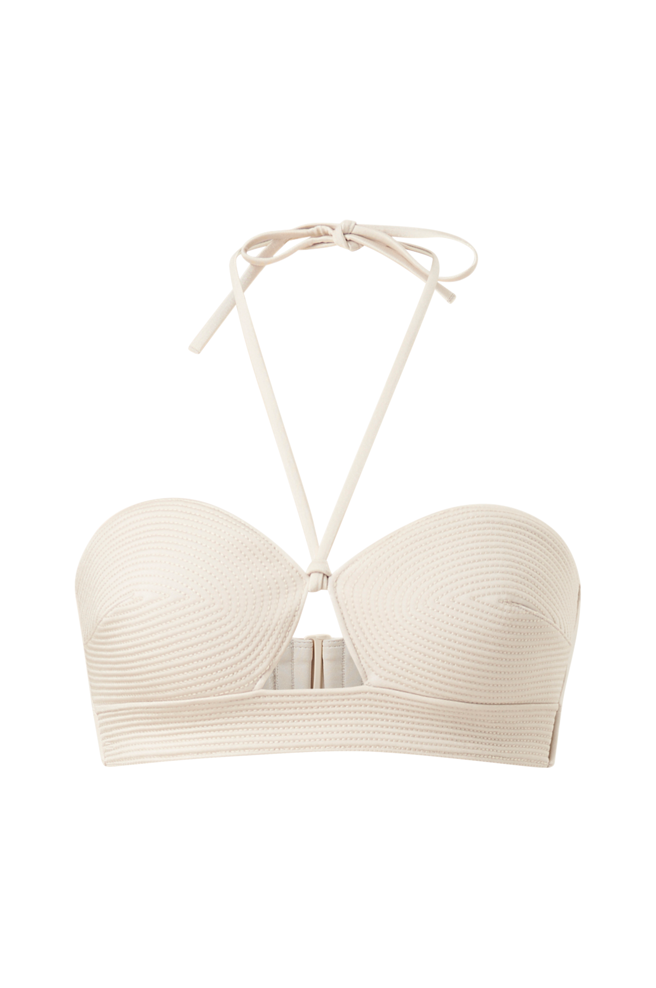 • Halterneck-design med knytbar tråd i nakken• Fôrede kopper med sydd mønster• Plastikkspenne i ryggen• Produktet inneholder gjenvunnet materiale som er brukt for å redusere mengden avfall, samtidig som det ikke er brukt nye ressurser.
