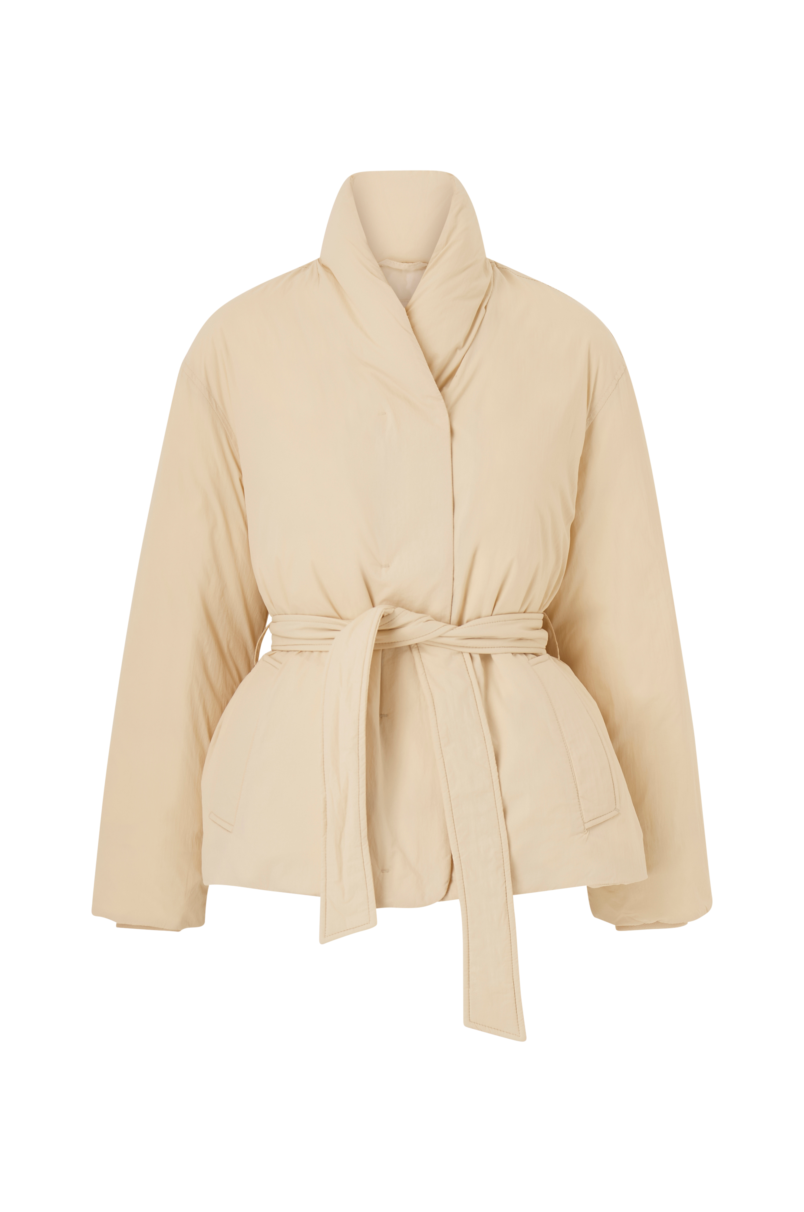 • Dun jakke med vevd, resirkulert ytterstoff• Glidelås• Klafflomme med trykknapper• To lommer med børstet trikotfôr• Avtagbar beltespenne ved midjen• Lengde: 70 cm i størrelse S