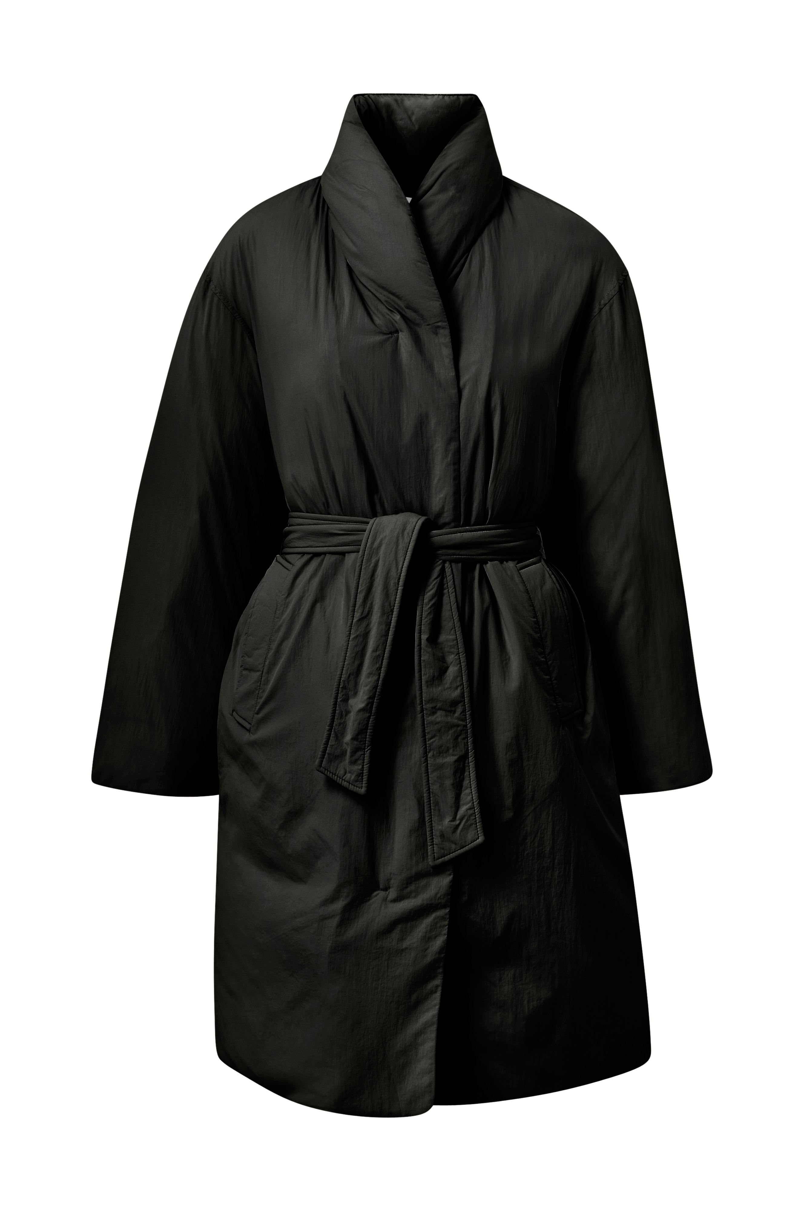• Kåpe med resirkulert dunvattering • Skjult to-veis glidelås med trykknapper foran • Ståkrage med overlappdesign • Skjult ribbet mansjett i ermeslutten • To lommer • Knytbart belte ved midjen • Lengde: 102 cm i størrelse S • Produktet inneholder gjenvunnet materiale som er brukt for å redusere mengden avfall, samtidig som det ikke er brukt nye ressurser.