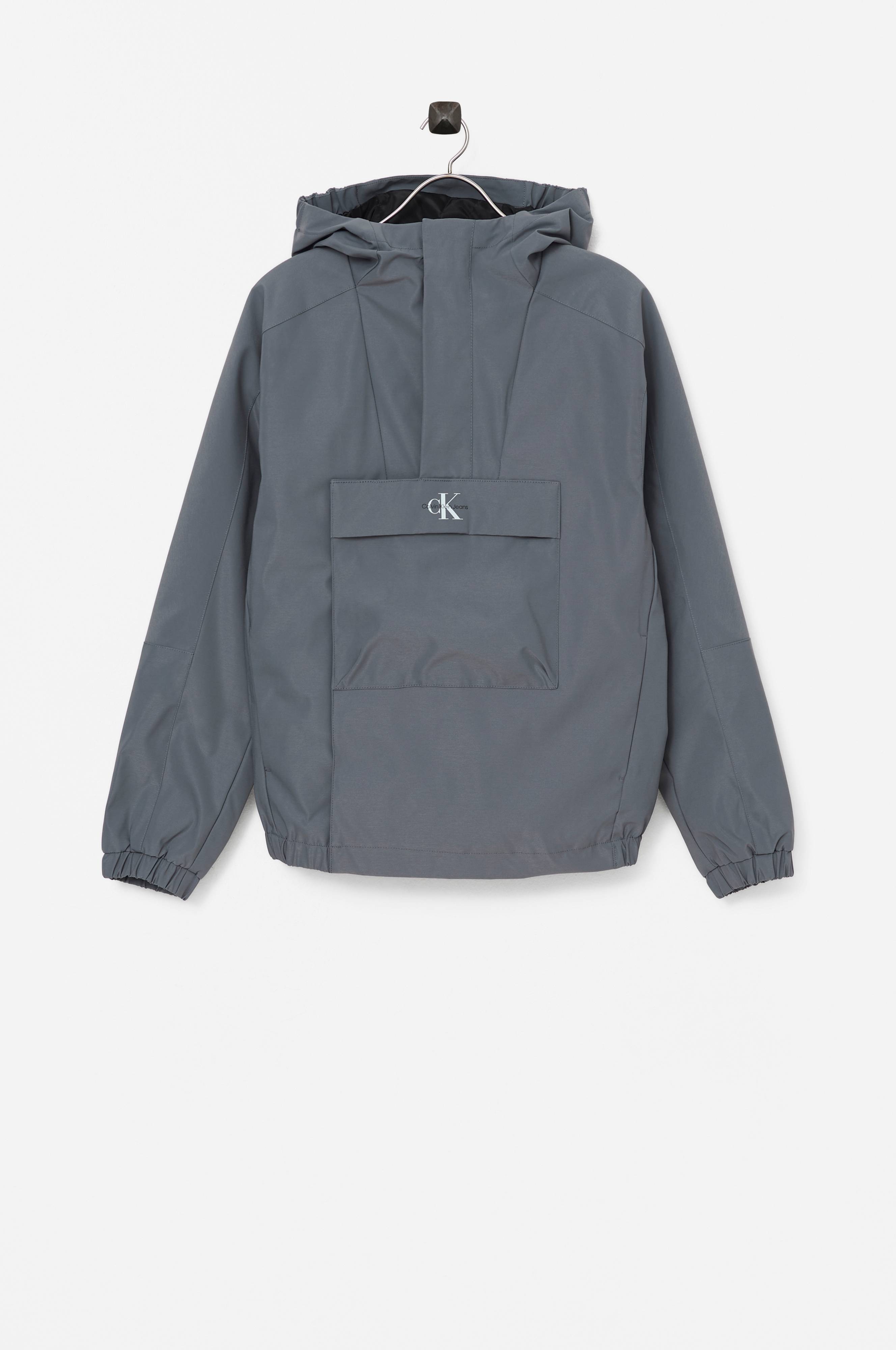 Anorakk i vannavvisende materiale med fast hette og lomme med klaff foran. Elastisk erme- og nederkant. Lomme i sidene. Fôret i tekstil. Når jakken blir våt oppstår det et mønster.
