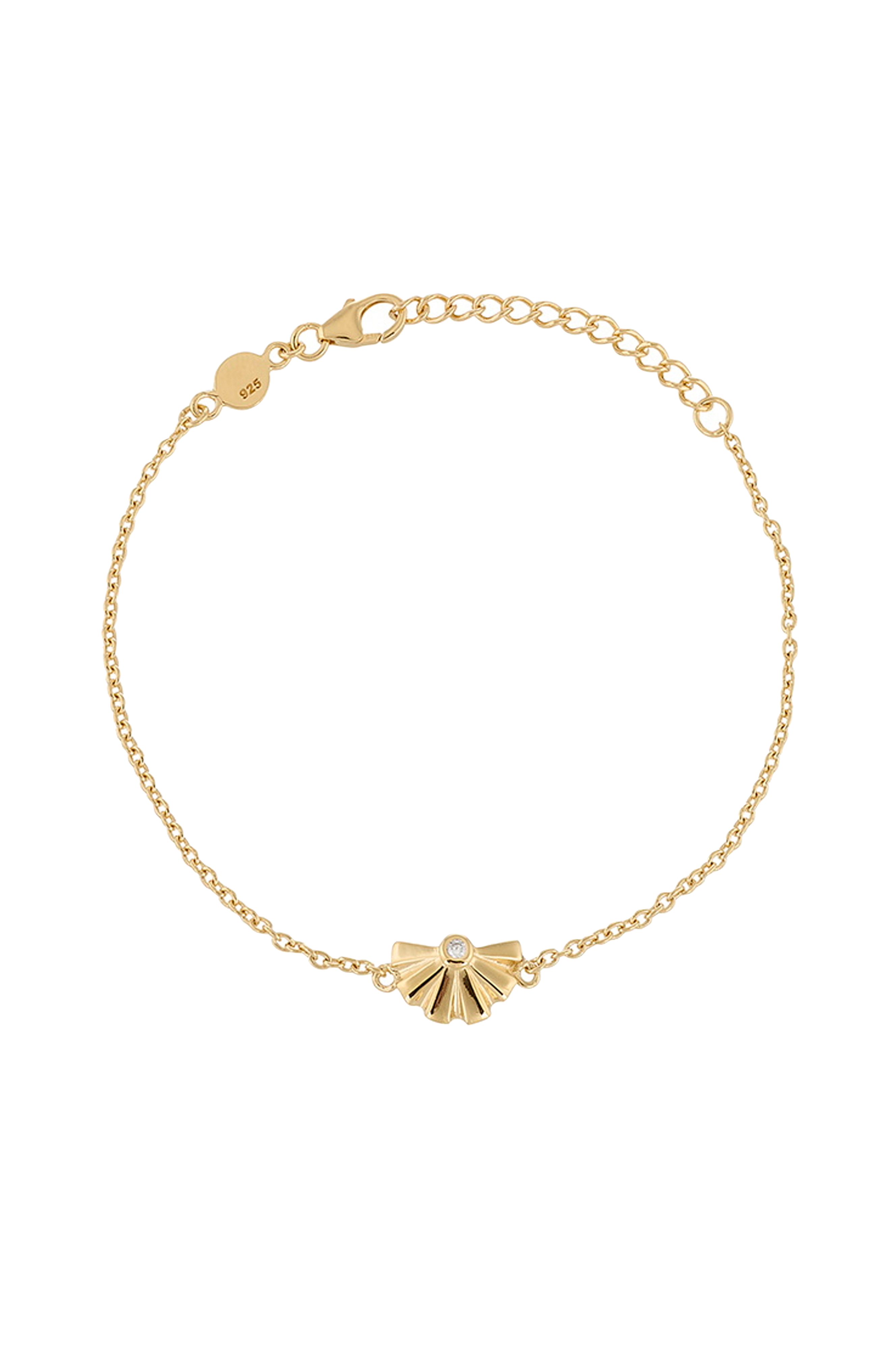• Rysjet vifte med en stein på toppen• Laget av 24K gullbelagt 925 sterling sølv• Stein: Cubic zirkonia• Justerbare lengden: 16-19 cm•