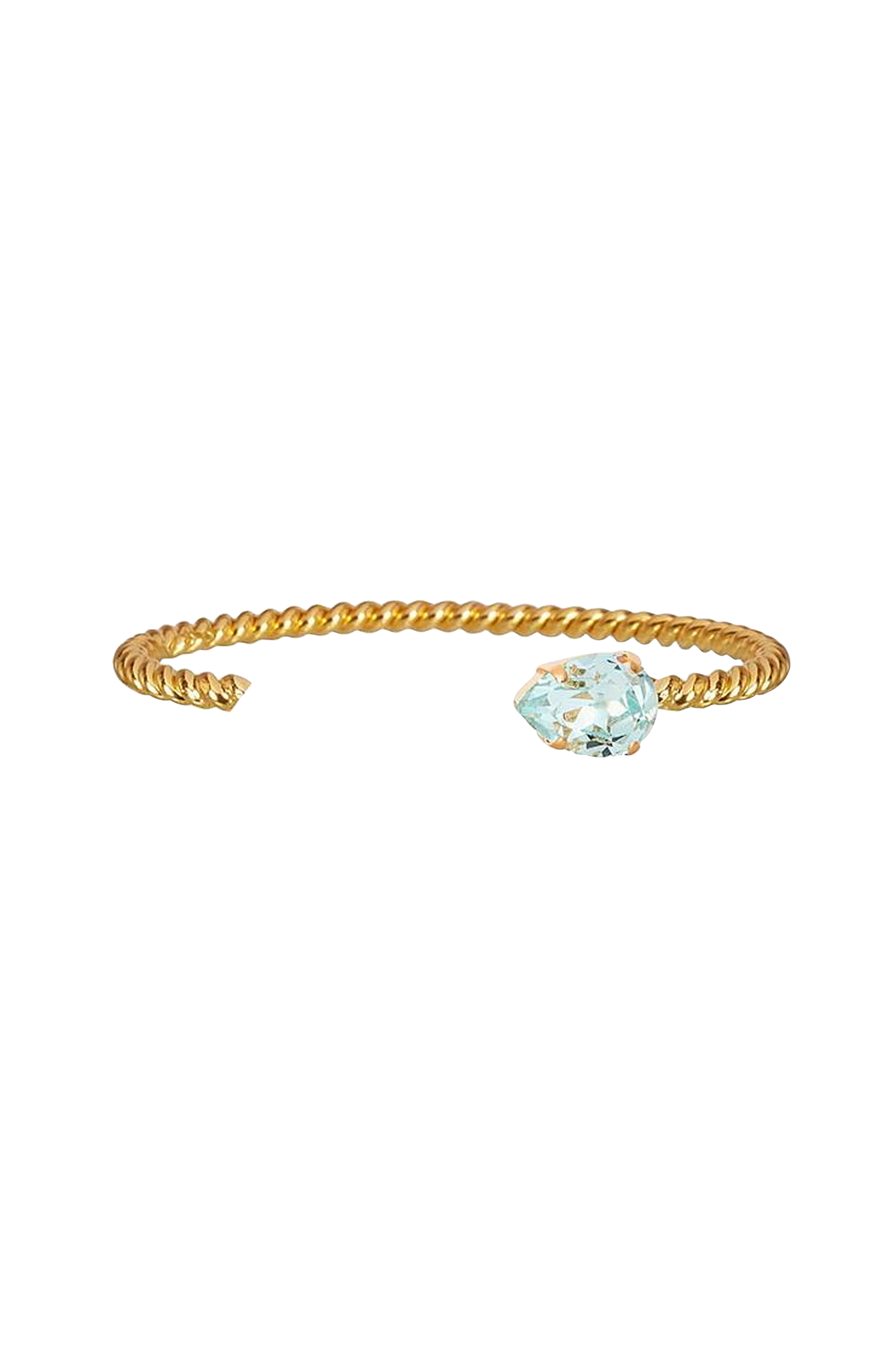 • 18K gullbelegg modell i messing med to dråpeformete krystaller• Justerbar størrelse• Nikkelsikkert• Designet i Sverige, håndlaget i Hellas