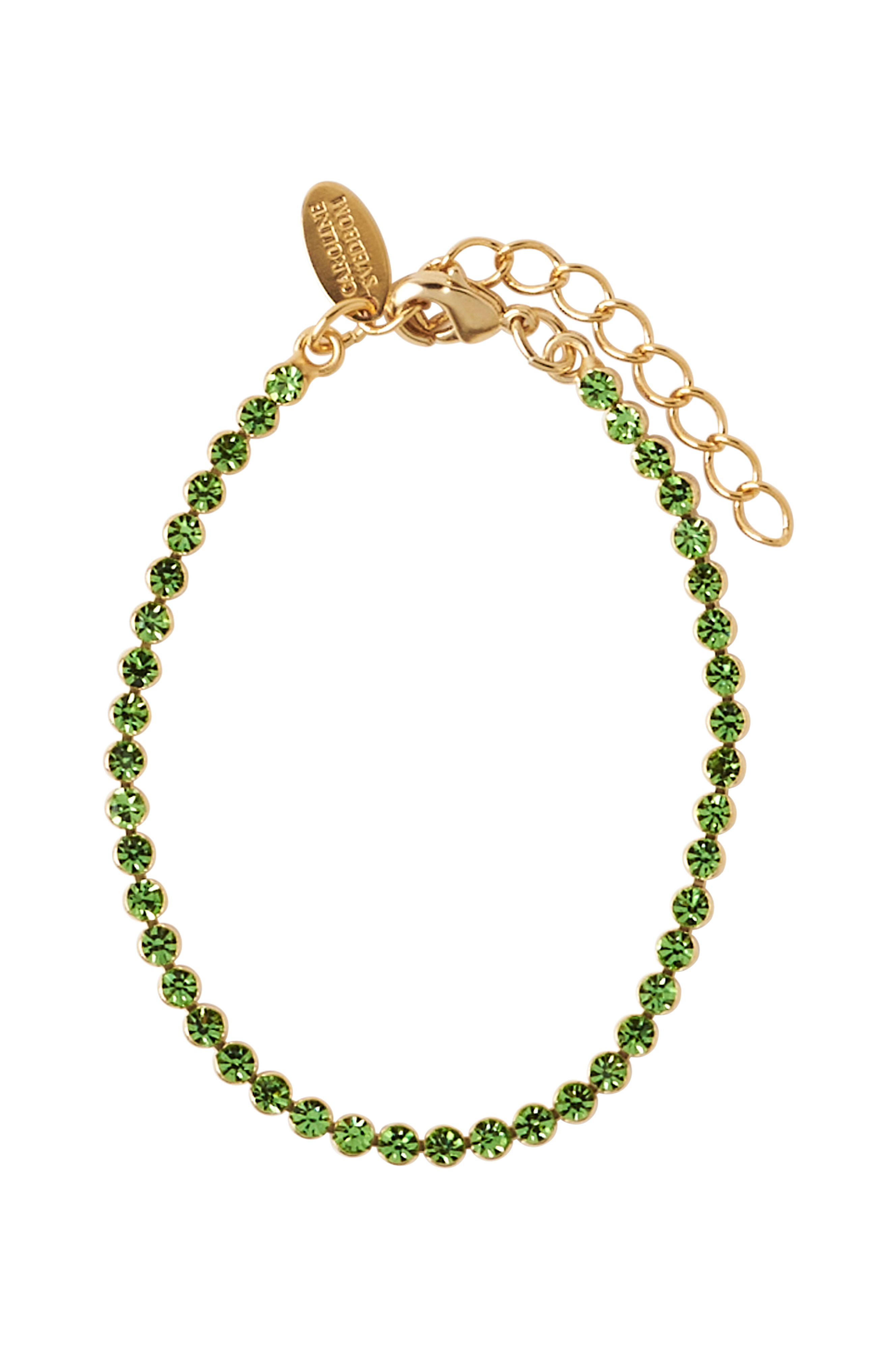 Med vakre små krystaller i farge kommer dette smykket til å gnistre vakkert på håndleddet. Størrelse: 15 cm + 5 cm forlengelseslenke. Produsert av messing med 18 K gullplettering. Designet i Sverige, håndlaget i Hellas.