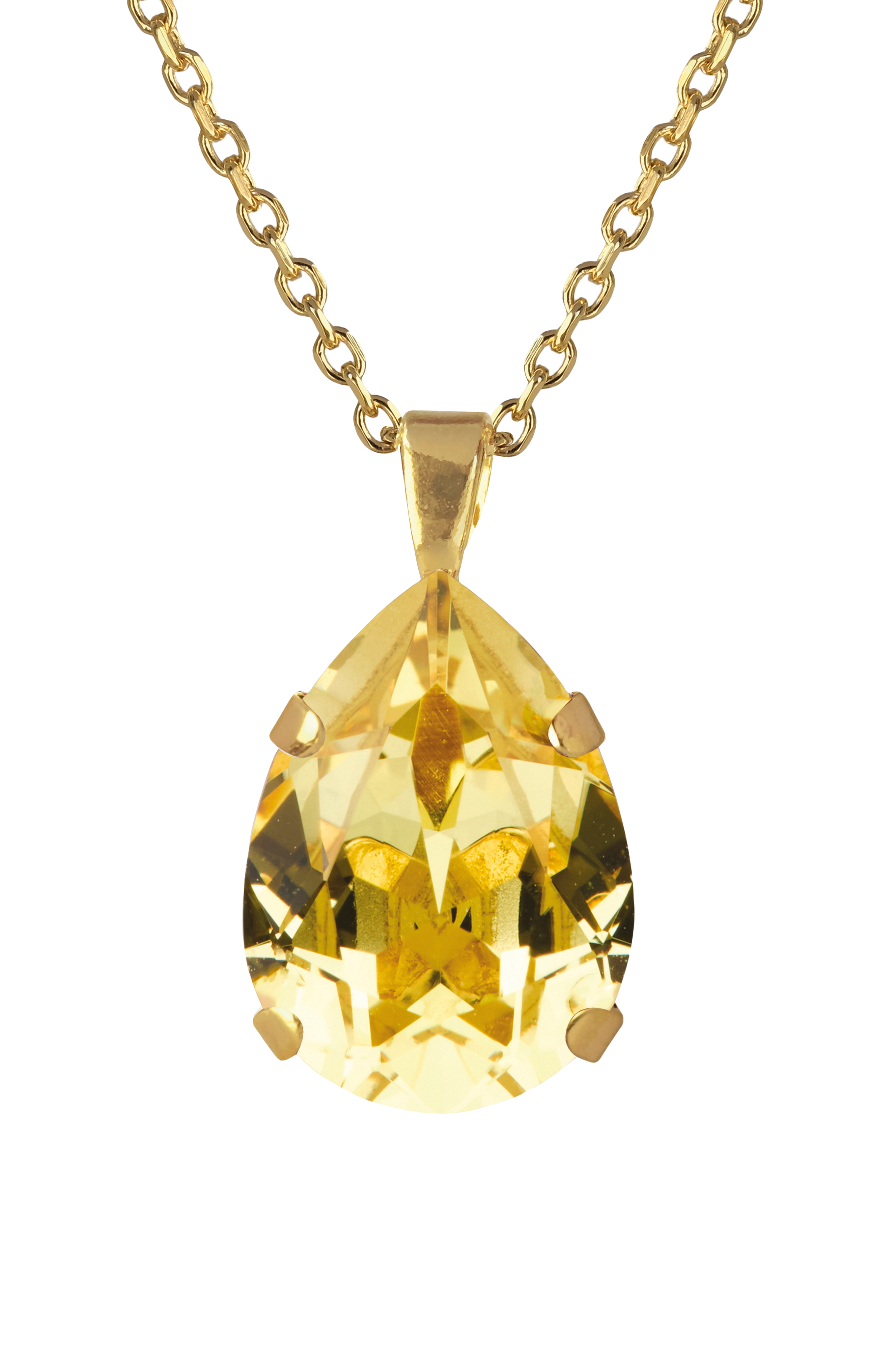 • 18K gullbeleggt halskjede i messing• Dingle med dråpeformet krystall• Nikkelbestandig• Designet i Sverige, håndlaget i Hellas