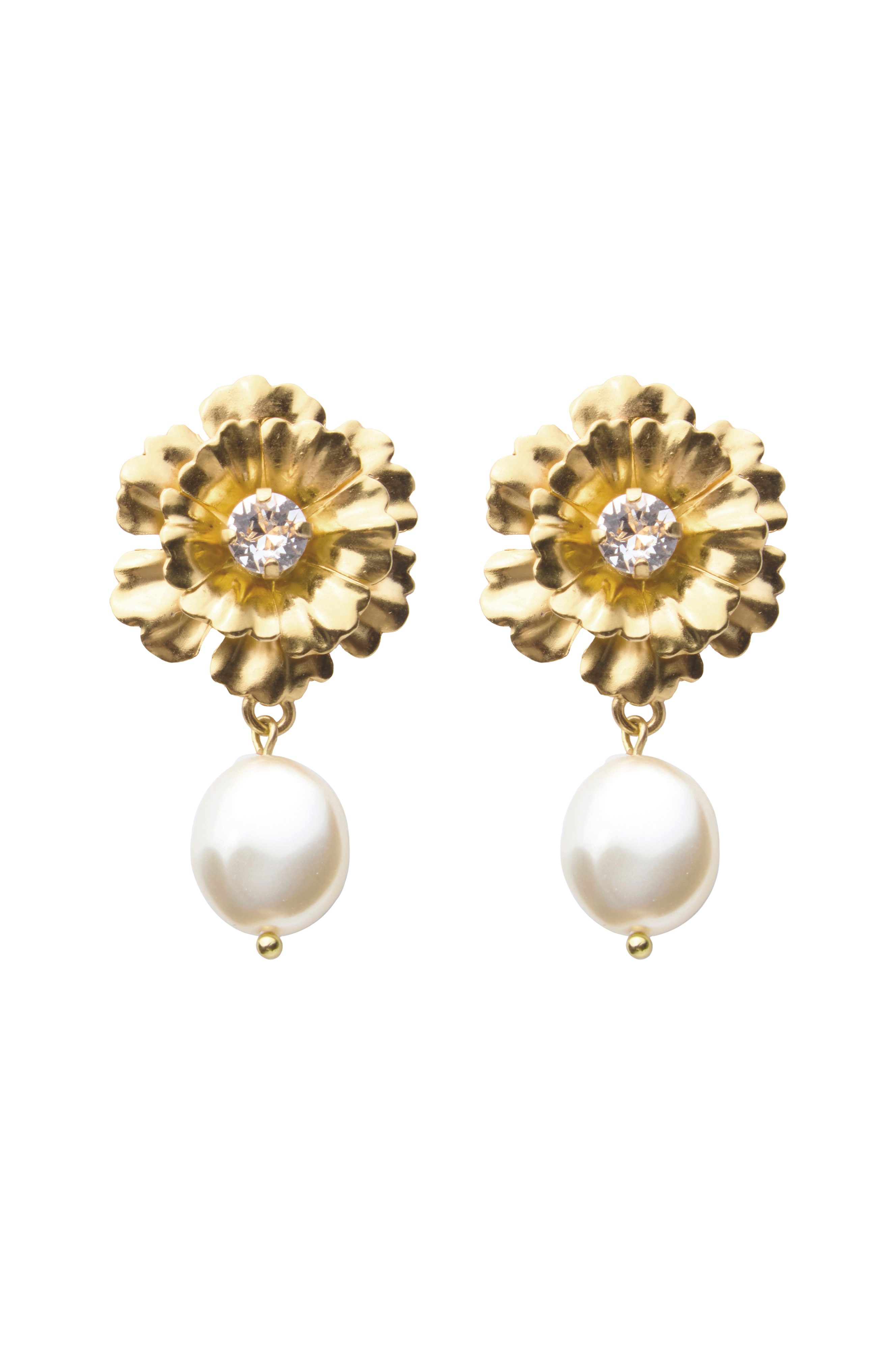 • Våre luksuriøse Blossom Pearl-øreringer har et vakkert blomsterdesign • Dekorert med glitrende krystaller • Hver ørering er avsluttet med en glitrende perledråpe • Designet for å bevege seg elegant med hvert skritt • Perfekt til både dag- og kveldsbruk • Størrelse: 45 x 24 mm • Laget av messing med 18K gullbelegg • Designet i Sverige • Håndlaget i Hellas.