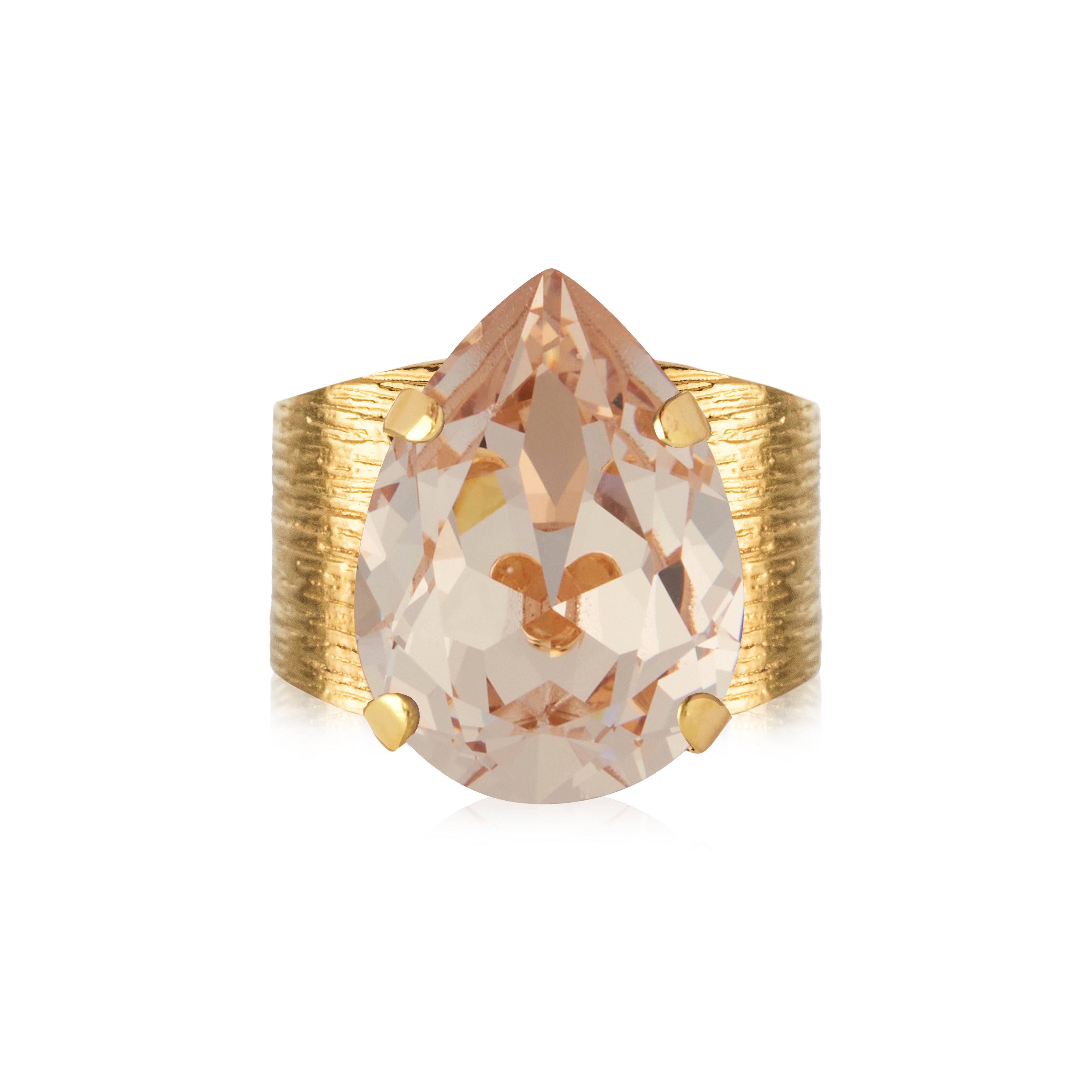 • Ring med dråpeformet krystall• Laget av krystaller av høy kvalitet• Justerbar design for perfekt passform• Størrelse: 18 x 13 mm• Laget av messing med 18K gullbelegg • Designet i Sverige• Håndlaget i Hellas