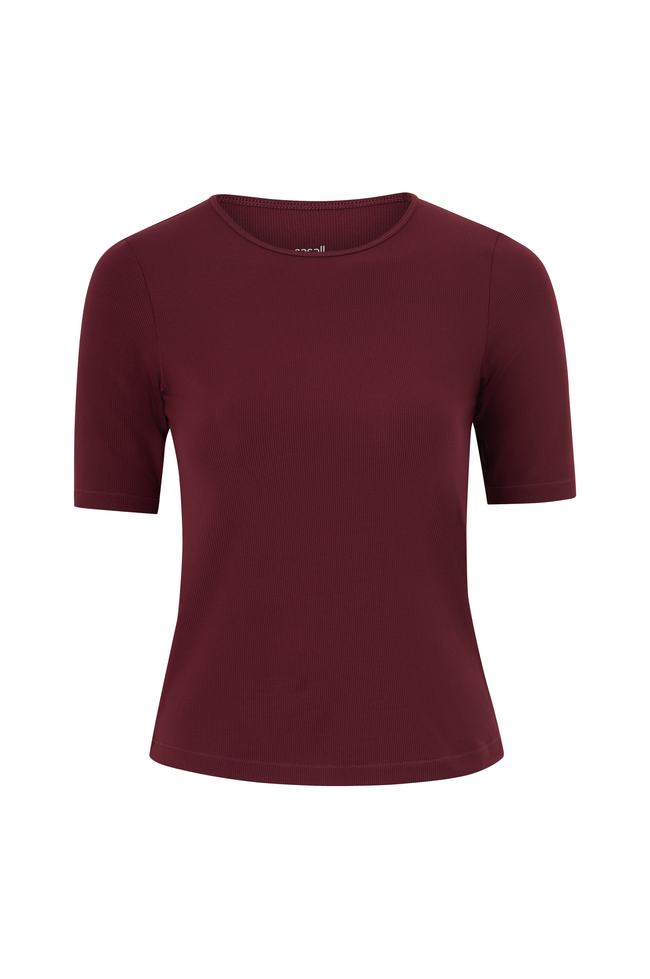 • Stretchy materiale med ribbet struktur• Smal passform• Rund hals• Kort erme