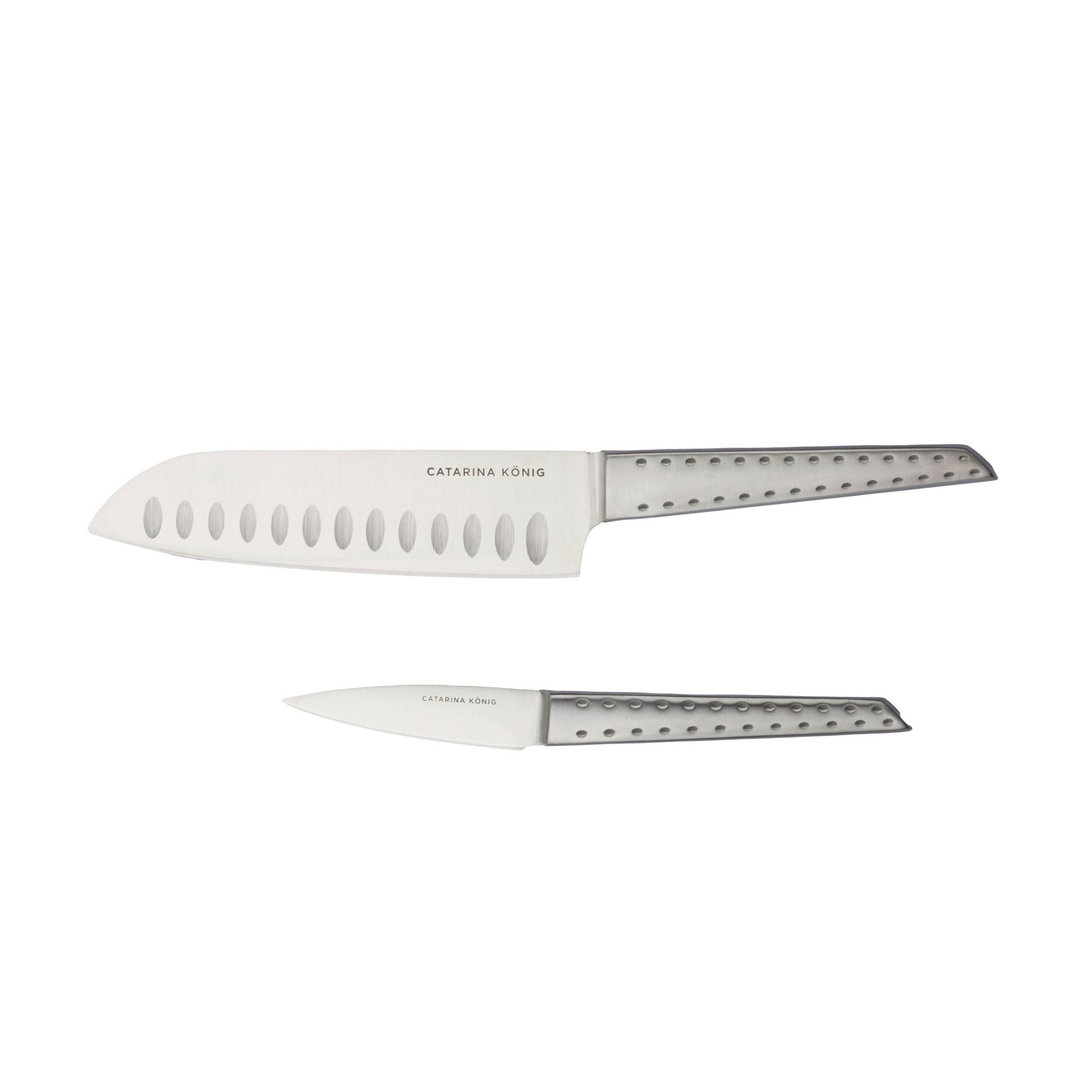 Kokke- og skrellekniven med et designmønster inspirert av jordbærfrøene, er et elegant og eksklusivt knivsett med håndtak i børstet stål og satinpolerte knivblader. Knivene er lette å gripe og perfekt balanserte, noe som gir matlagingen en ekstra gullkant. Størrelse kokkekniv 30 cm, urtekniv 21 cm. Tåler oppvaskmaskin, men vi anbefaler at du alltid vasker knivene for hånd for å sikre lengst mulig holdbarhet. Leveres i en eksklusiv gaveeske.
