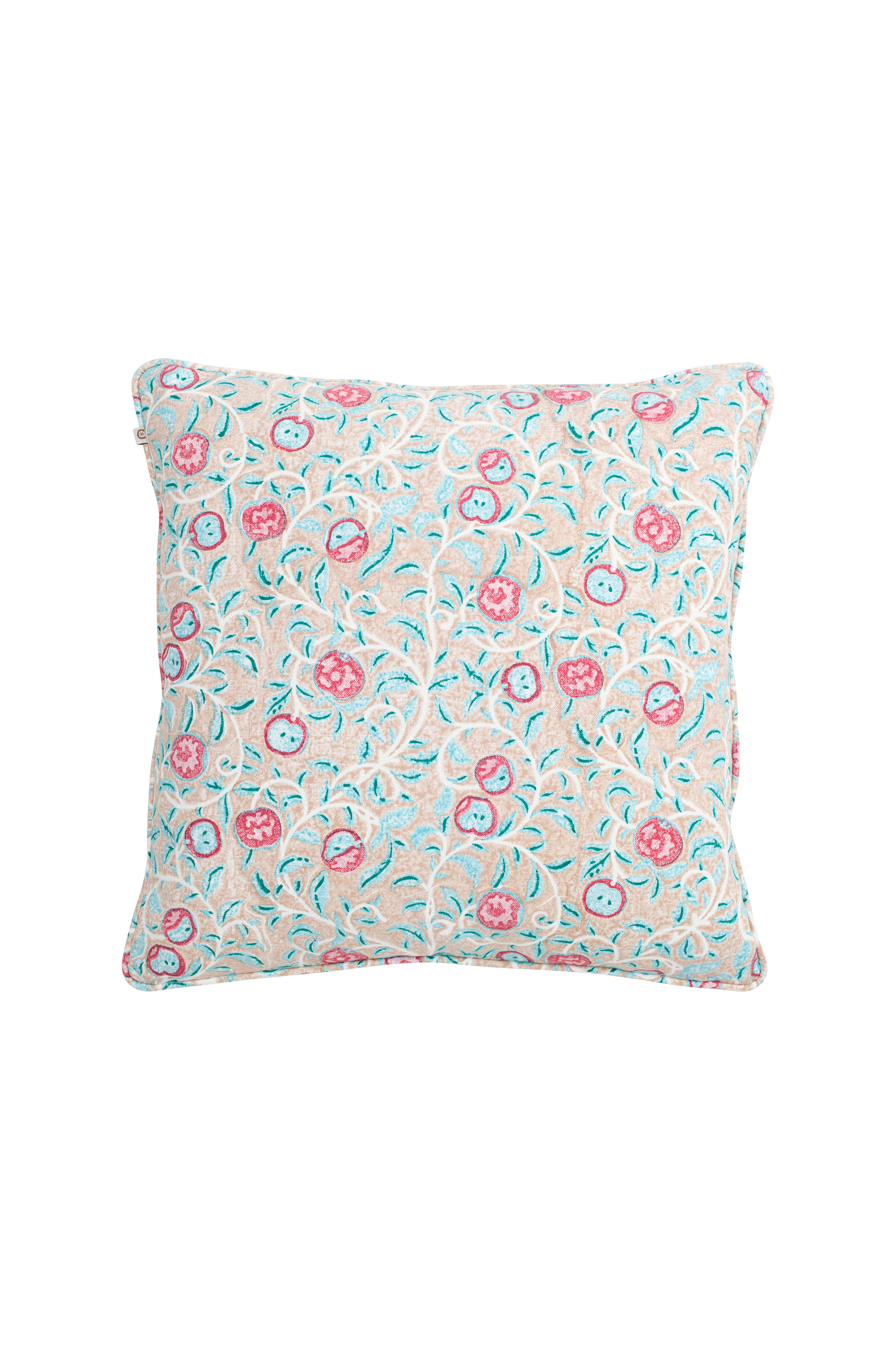 Et vakkert putetrekk i bomull med trykk fra apple. Mønsteret er trykt for hånd ved hjelp av tradisjonelle indiske blokktrykkteknikker. Et unikt håndverk som gir hvert tekstil et unikt og dekorativt uttrykk.