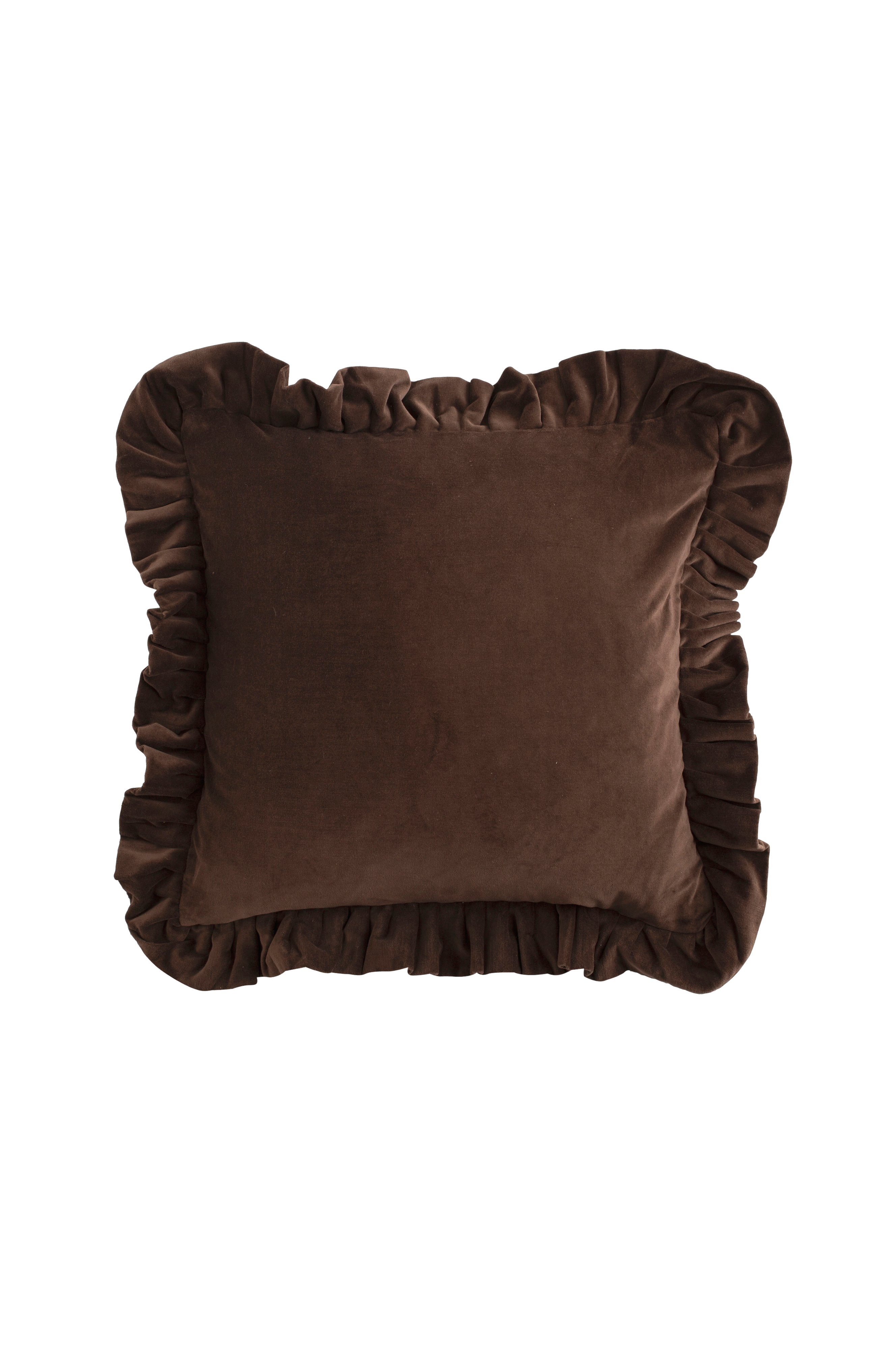 Et luksuriøst putetrekk i kraftig bomullsfløyel med en sjenerøs og dekorativ volang langs kanten. 45x45 + 7 cm volang