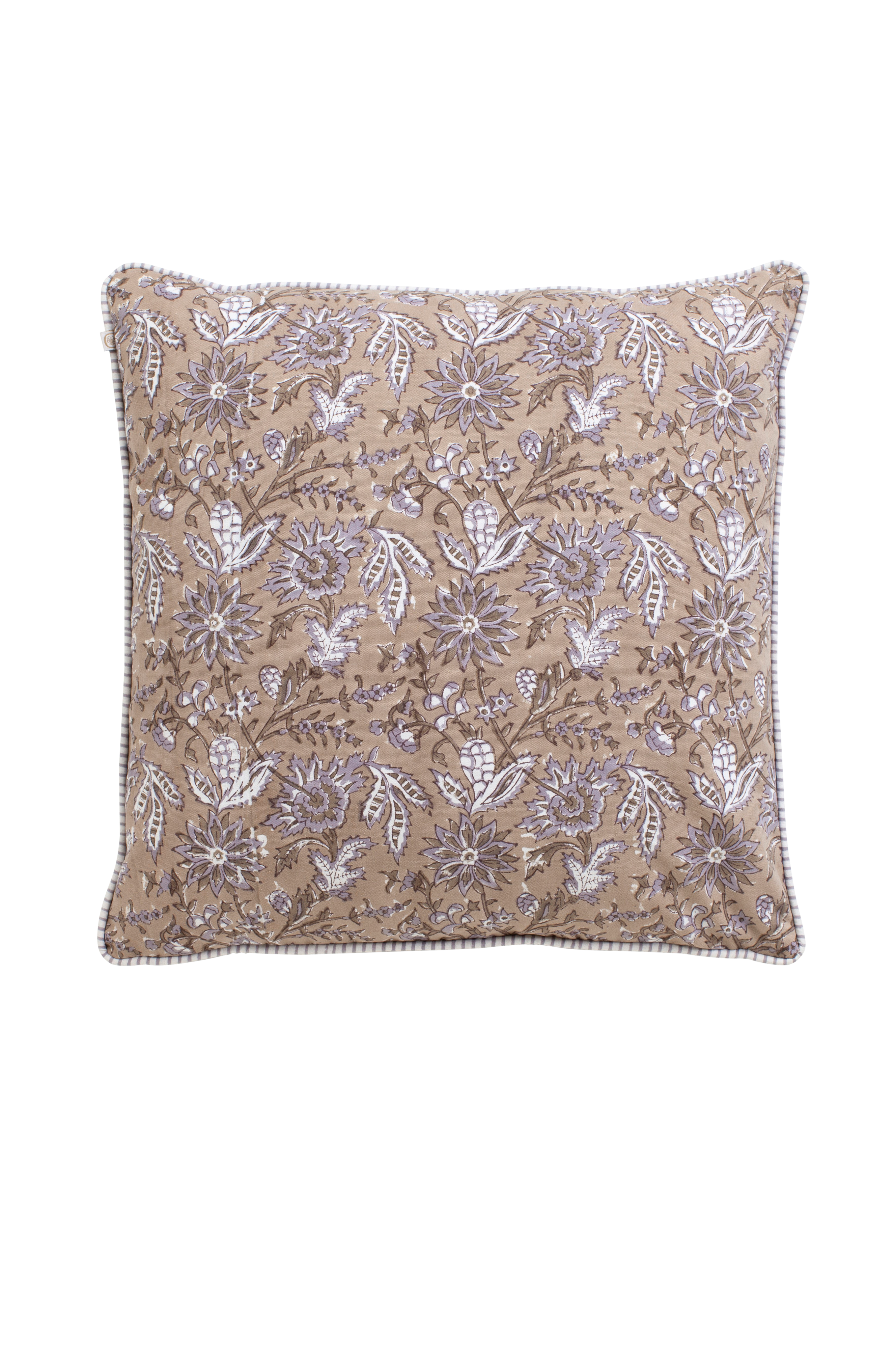 Vakkert putetrekk i bomull med blomstrete mønster i flere farger. Mønsteret er håndtrykt med treblokk i tradisjonell indisk blokktrykkteknikk. Den håndlagde teknikken gir mønsteret et levende og dekorativt uttrykk. Et unikt håndverk som er like vakkert inne som ute.