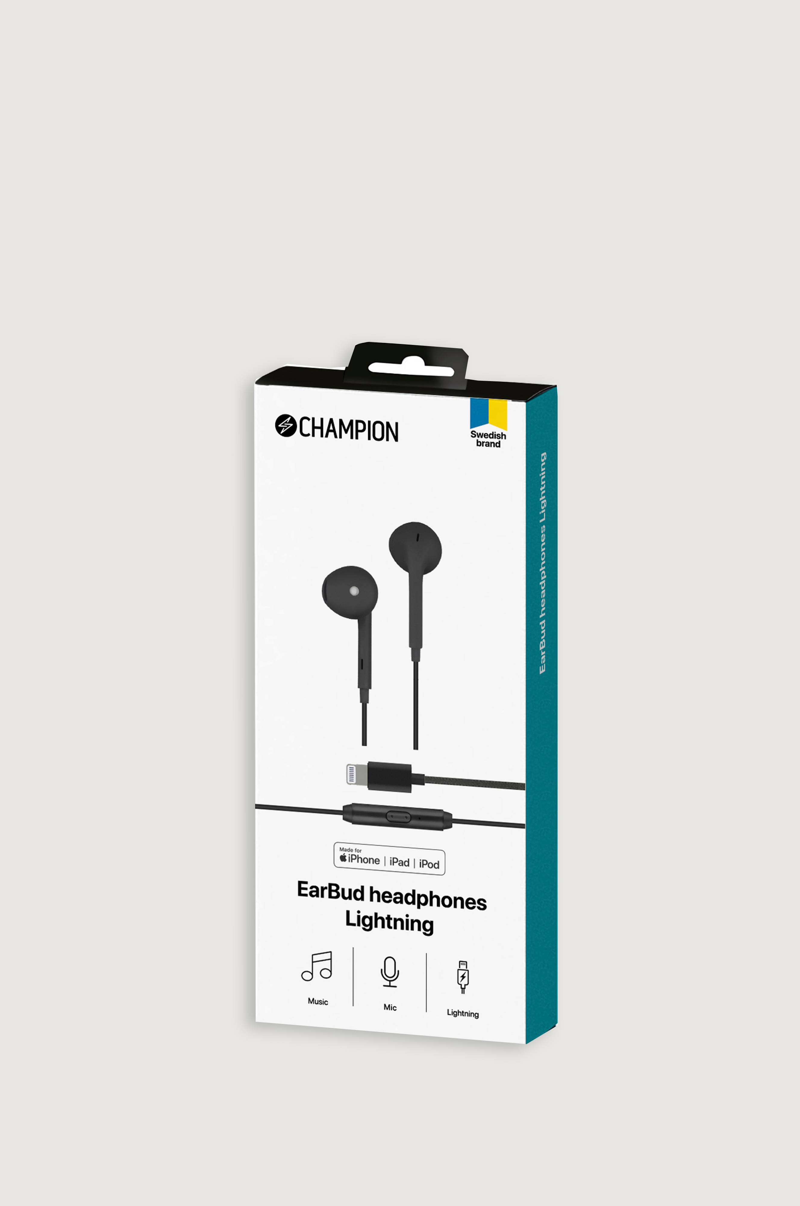 Champions earpod-ørepropper med Lightning-kontakt er ergonomisk utformede, noe som gjør de lette og komfortable og gir deg en behagelig lydopplevelse i mange timer. Hodetelefonene har Lightning-tilkobling, noe som gjør at de passer alle iPhone-modeller fra iPhone 5 og oppover. Under det mattsvarte dekselet sitter et par høyttalerelementer på 14 mm som leverer musikk med enestående lydkvalitet. Med en enkel knapp på fjernkontrollen, og en flokeløs ledning delvis i nylon, kan du kontrollere musikkavspilling, samt svare på samtaler mens du er på farten, med en innebygd mikrofon. Dette gjør Champions ørepropper til din daglige følgesvenn på jobb, hjemme og på reise.