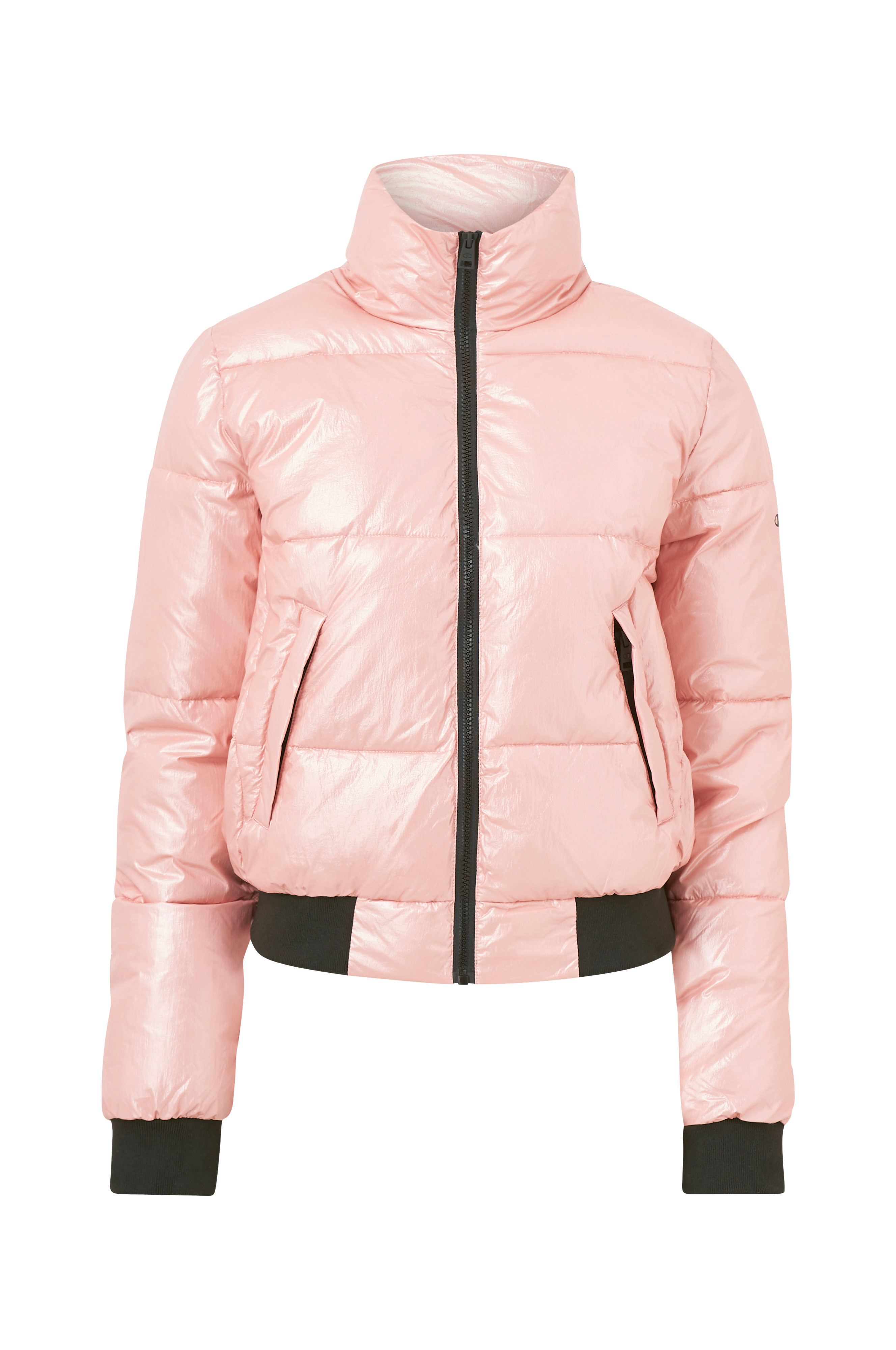 Jakke Bomber Jacket fra Champion. Vattert modell med quiltstikning og dunfølelse. Glidelås foran og høy, vattert krage samt to innfelte lommer med glidelås. Vrangbord i erme- og nederkant. Lengde ca. 59 cm i str S.