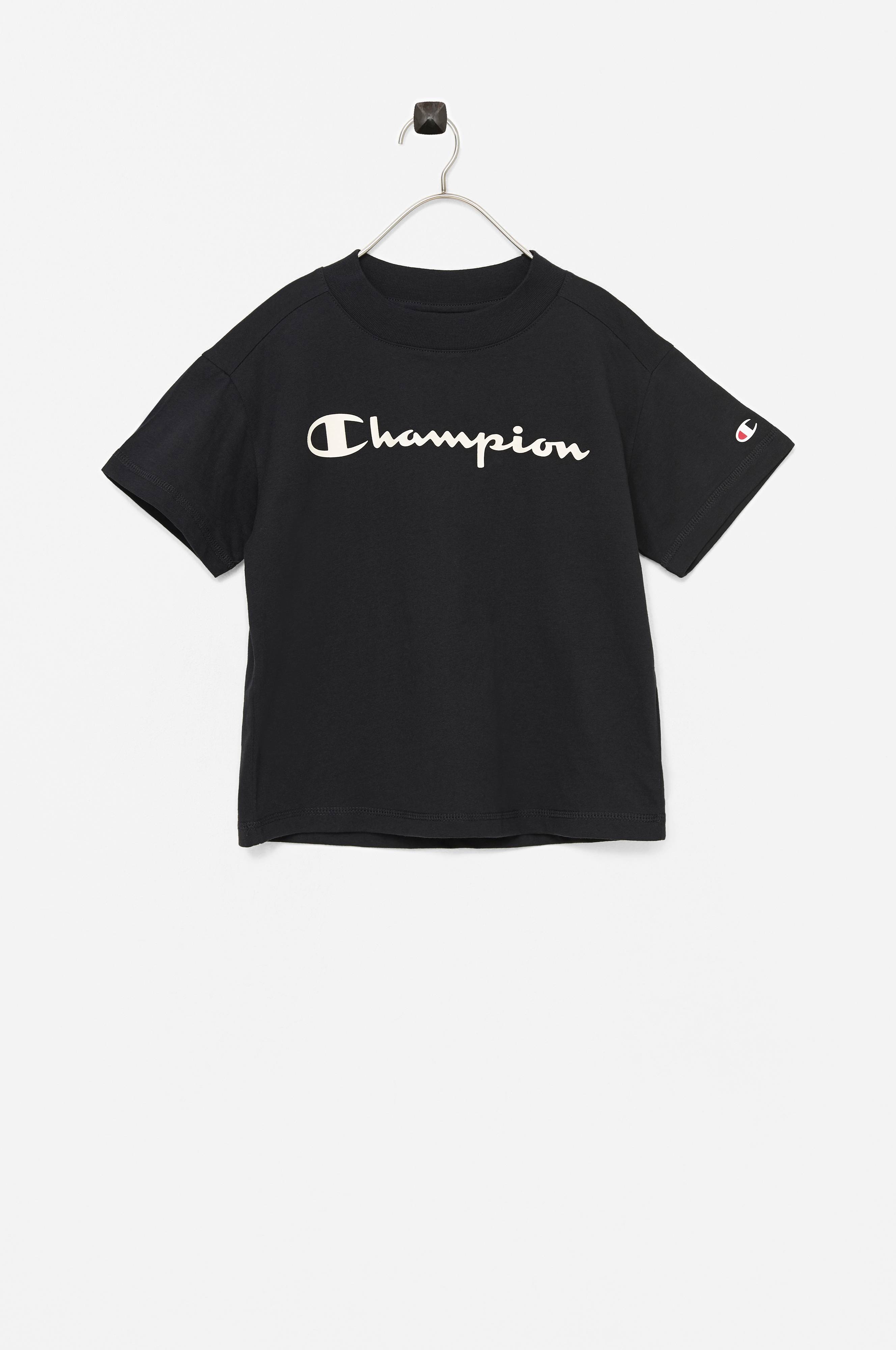 T-shirt Crewneck Croptop fra Champion. Rett modell med korte ermer, logotrykk på brystet og rund hals med bred vrangbord.