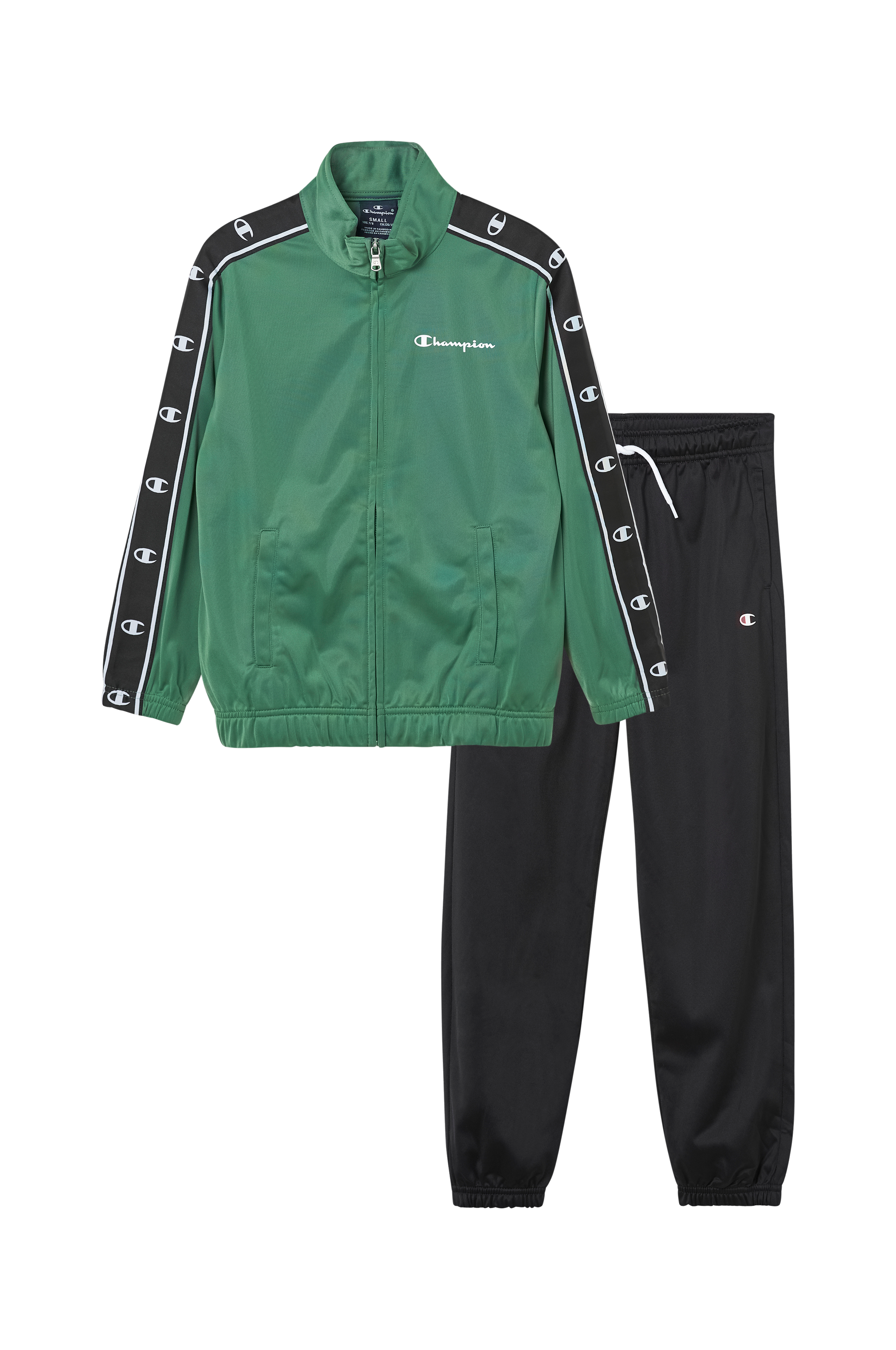 Tracksuit med jakke og bukse i et lett blankt materiale. Vevd logobånd langs ermene.Jakke: Ståkrage, glidelås og to lommer. Elastikk i erme- og nederkant.Bukse: Elastisk midje med snøring. Lomme i sidene og strikk i benkantene.