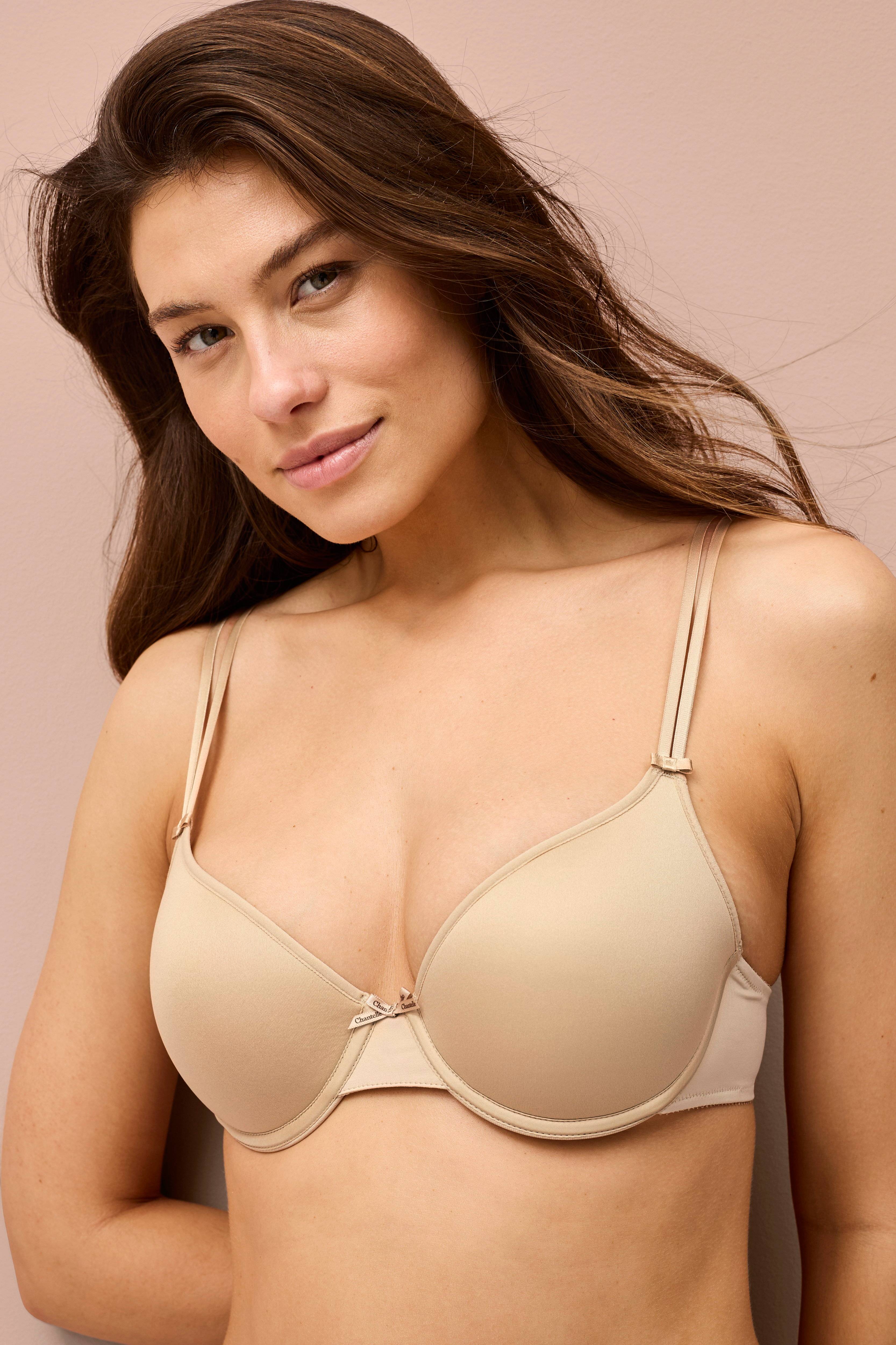 Spile-bh Memory Basic Invisible fra Chantelle i myk mikrofiberkvalitet. Modell med spile og glatte cuper som ikke synes under klærne. Lett vatterte cuper og doble skulderbånd med sløyfe foran.