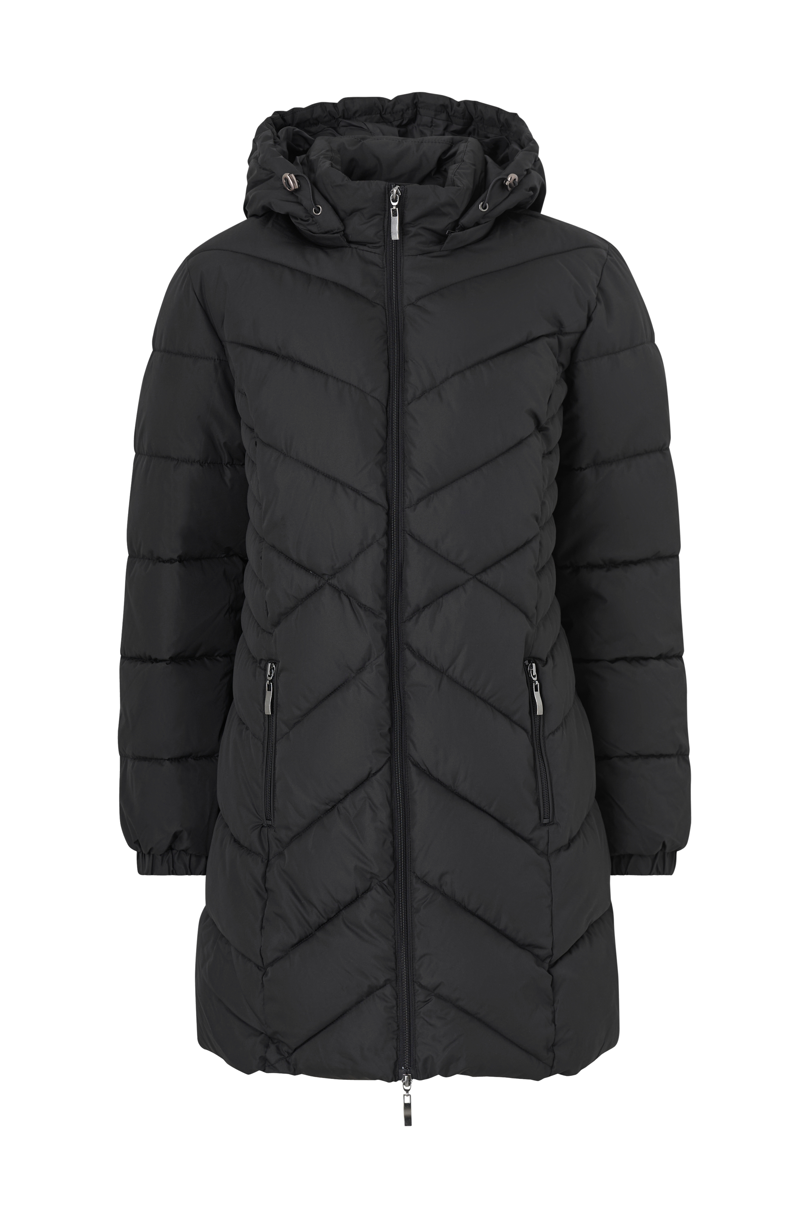 • Vattert, polstre kåpe• Avtagbar hette med snøring• To-veis glidelås• To glidelåslommer• En åpen innerlomme• Gummistrikk i ermeslutten• Plusstørrelser• Lengde: 89 cm i størrelse S