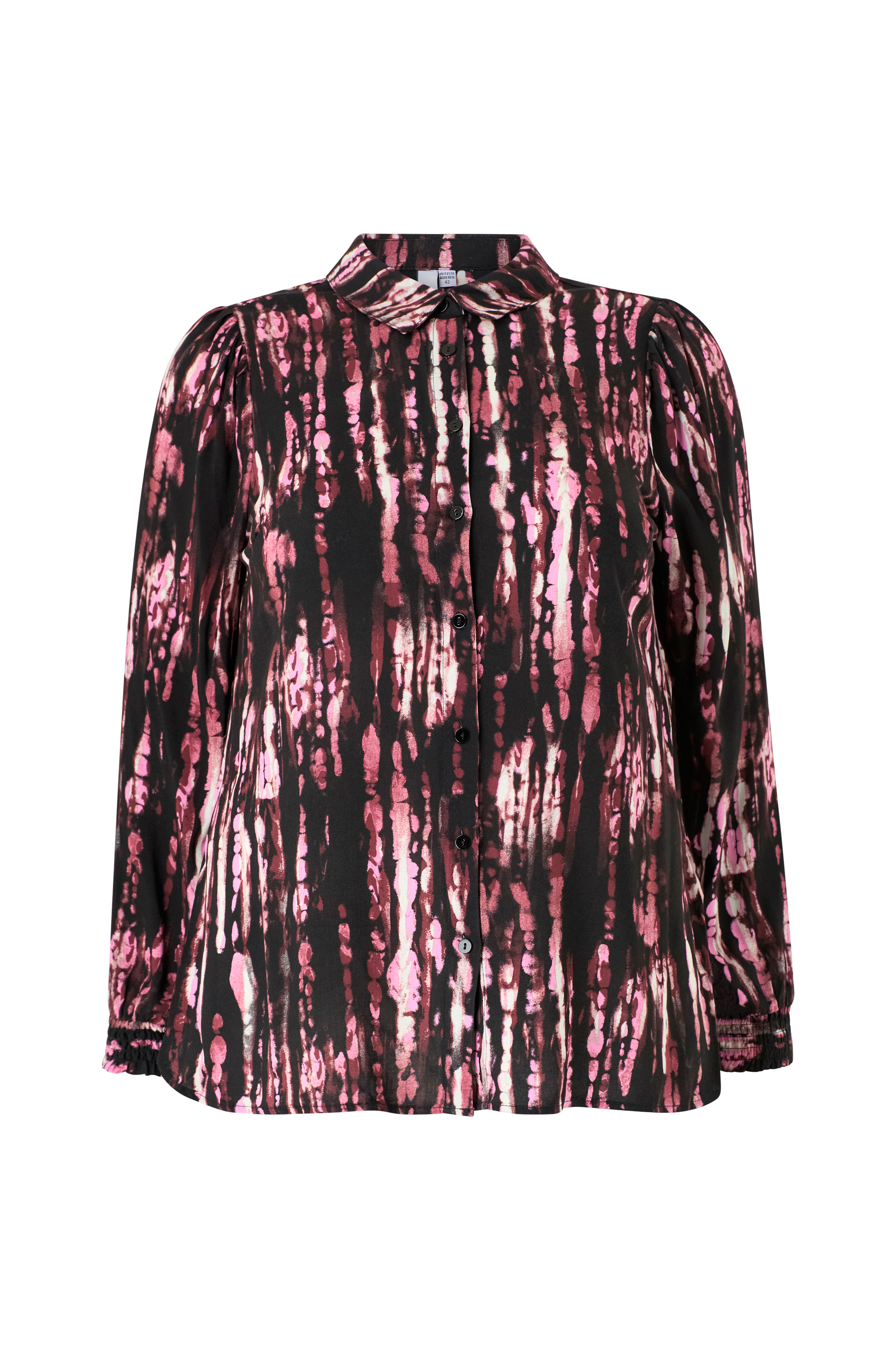 • Mønstret skjorte i viskose• Krage• Lange puffermer• Vaffelsøm i ermeslutten• Knappelukking• Avrundet linning med splitt i sidene• Pluss-størrelser