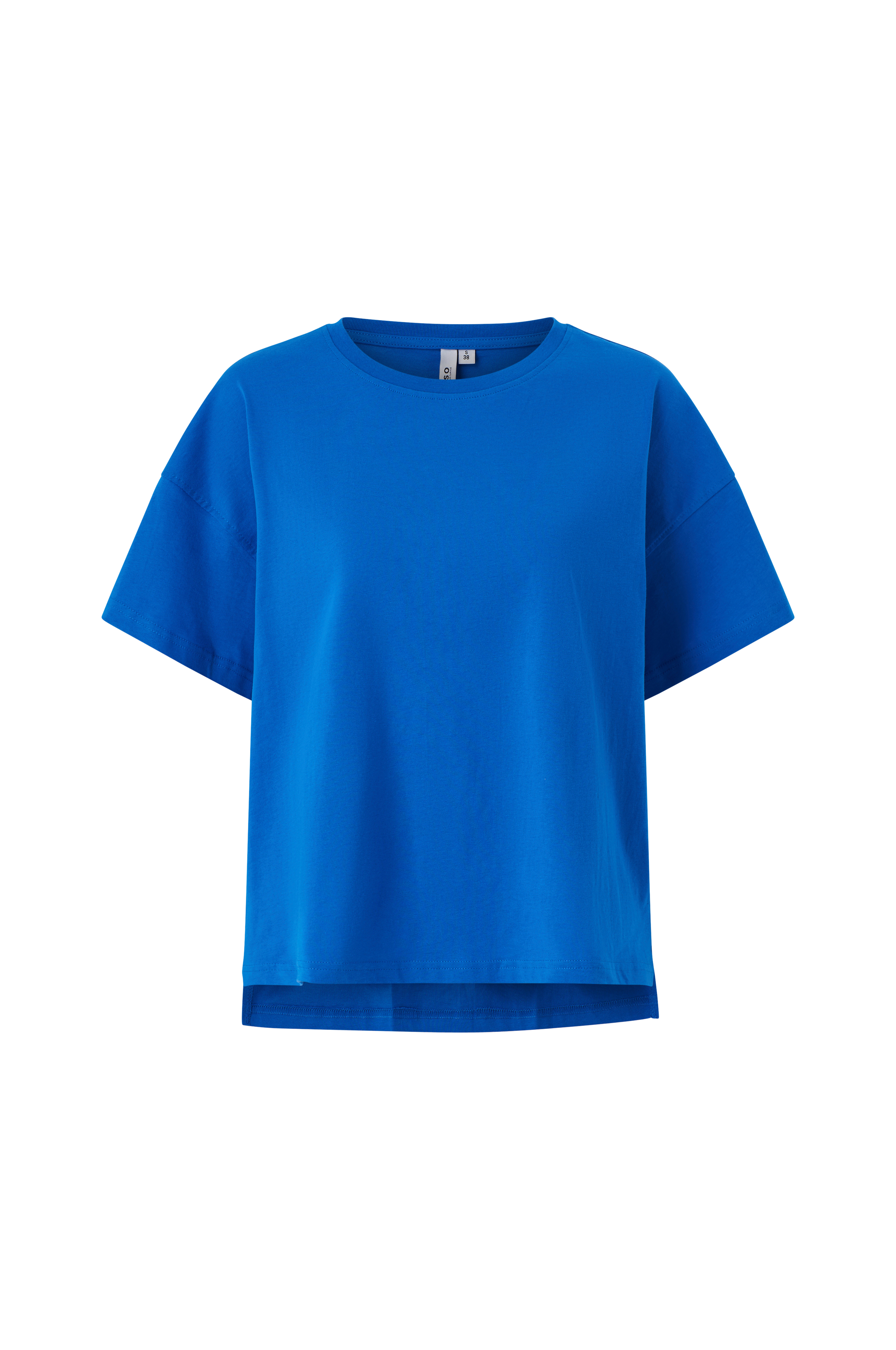 • T-skjorte i bomull• Rund hals• Utringede skuldre• Skjær i sidene• Plusstørrelser• Litt lenger bak