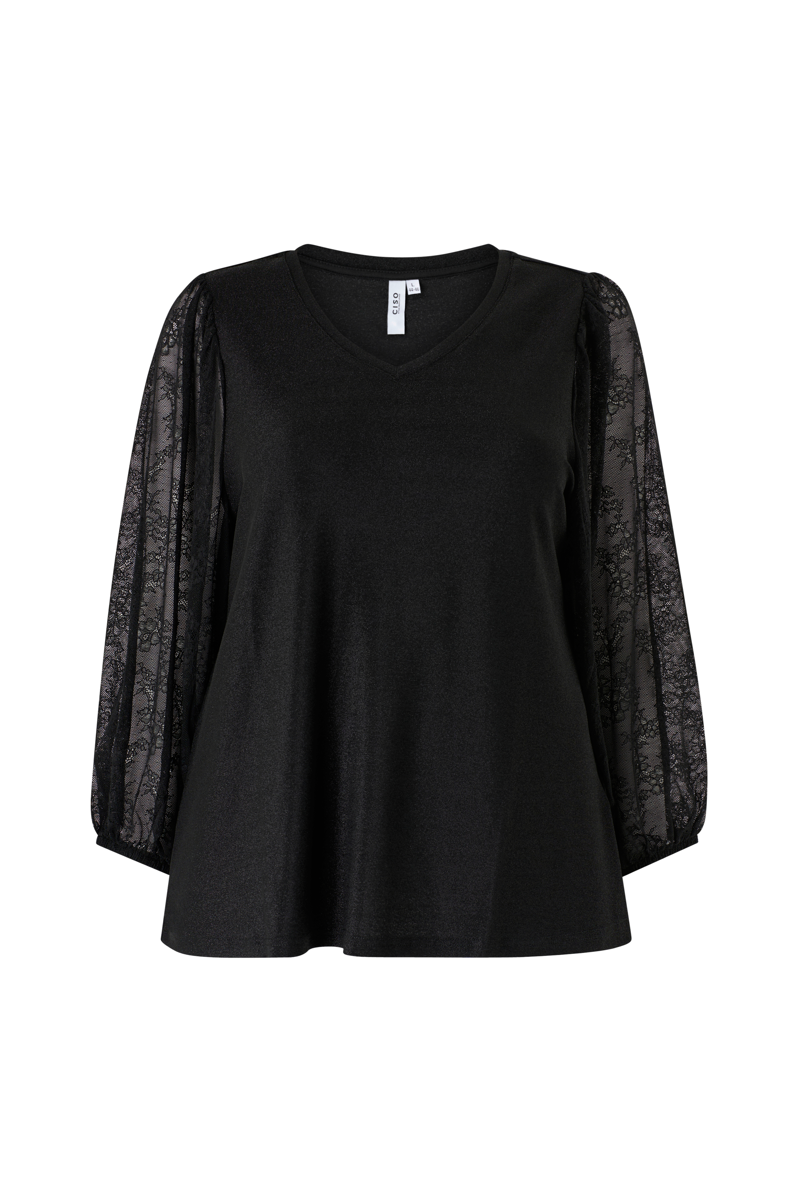 • Glitrende topp• V-hals• Ballongermer i blonde• Pluss-størrelser