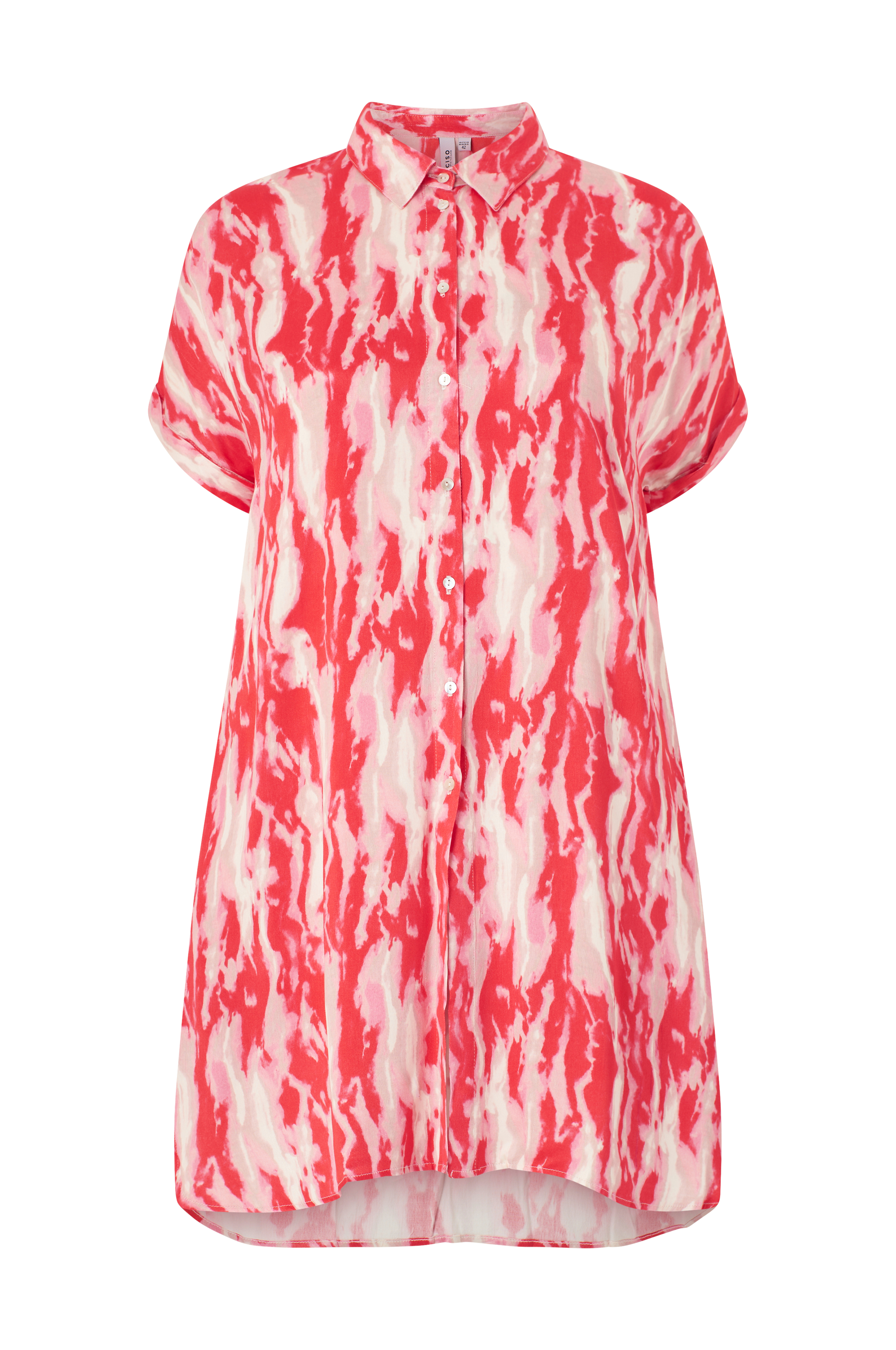 • Skjortemodell i sateng med knapper hele veien fram• Liten krage• Utringet skulder med festede opprullede ermer• Kort skjær nede i sidene• Lengde: 95 cm i størrelse 42