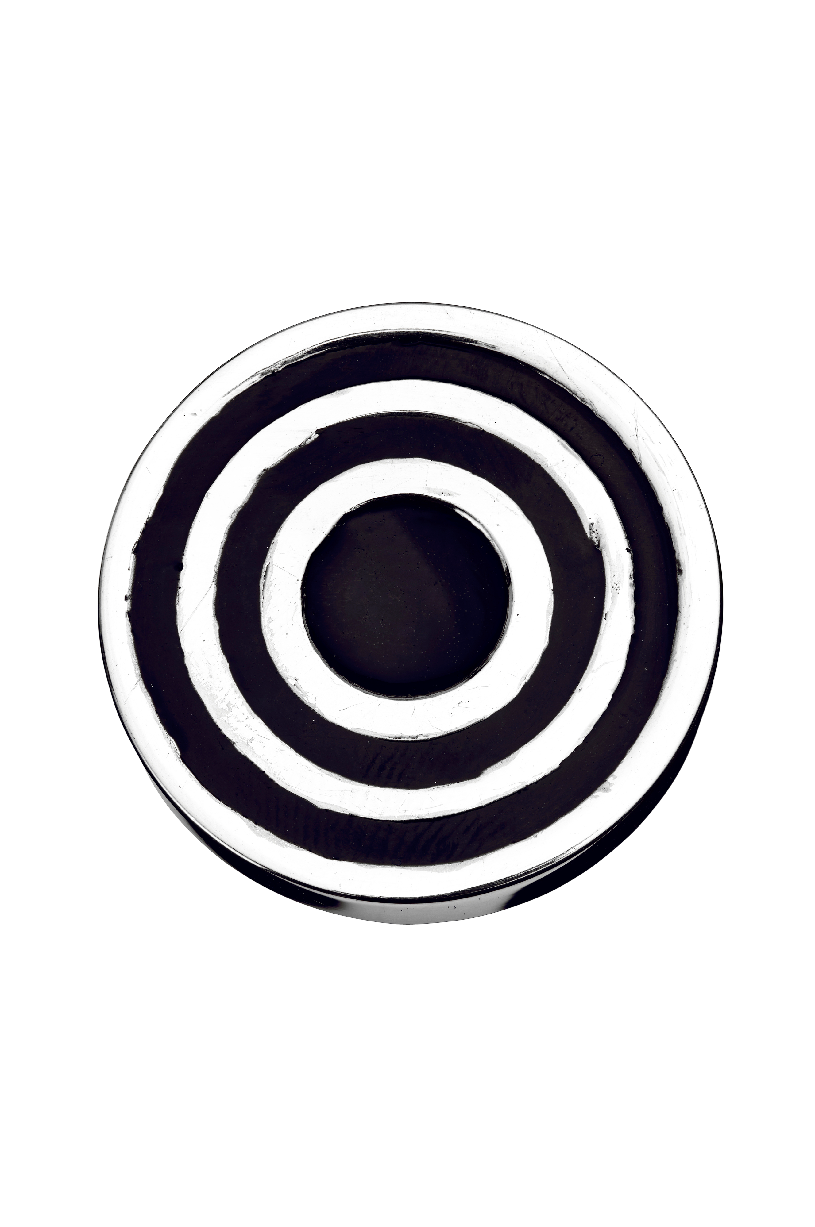 Dørknott Circular i forniklet messing med håndmalte svarte detaljer. Knotten er høyglanset og elegant. Skift ut knottene for en enkel fornyelse av møbler. Dørknotten passer like fint på kommoden som på kjøkkendørene.