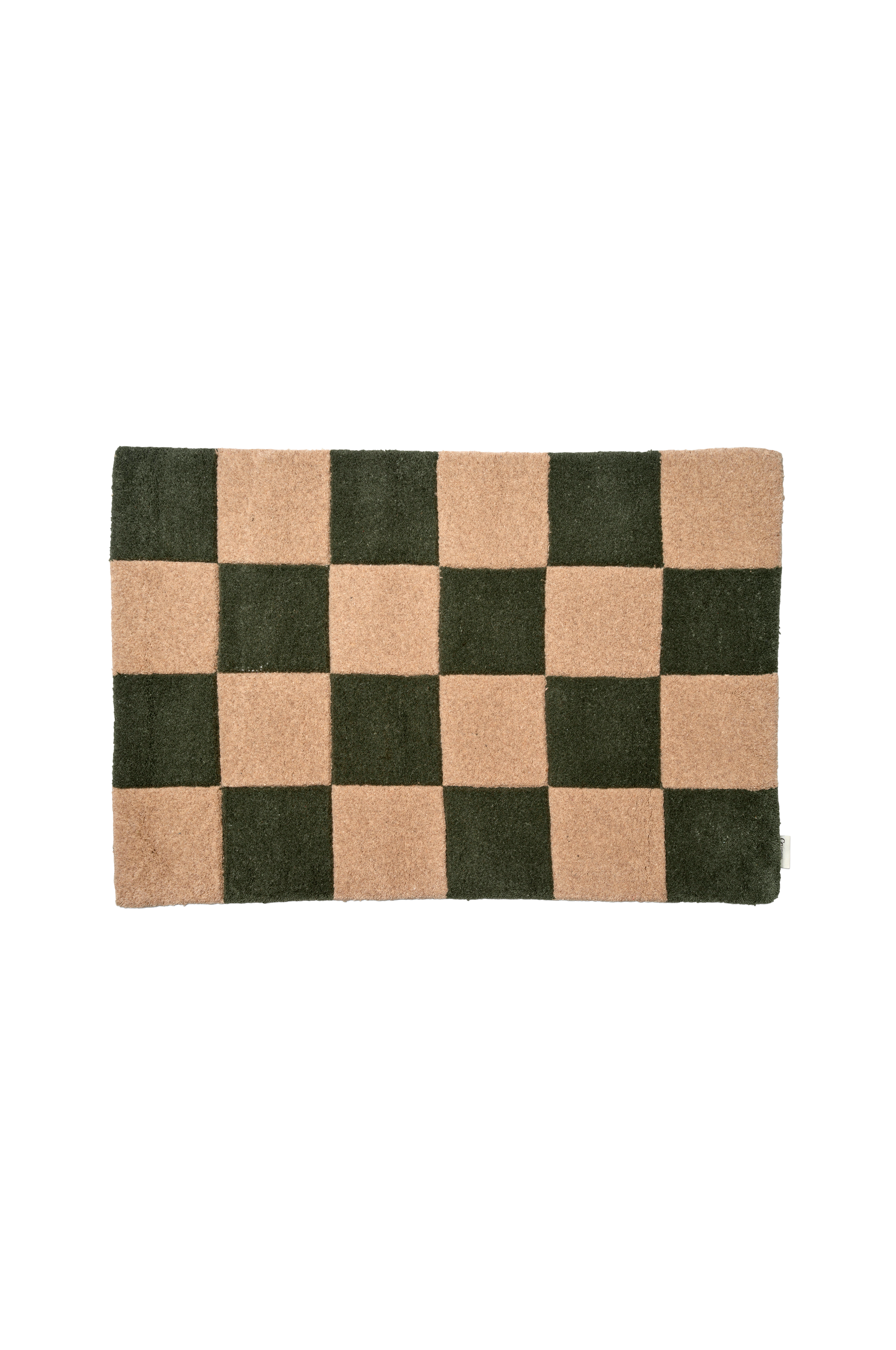 Square er en håndtuftet dørmatte i ull med et grafisk rutemønster som kombinerer tekstur og struktur i et tidløst design. Teppet har en bakside i bomullsduk som gir stabilitet og holdbarhet, mens ullens naturlige egenskaper gjør det motstandsdyktig mot smuss og lett å vedlikeholde - ideelt for bruk i gangen eller vinterhagen. Luggene er laget av ull med en bakside i bomullsduk, tykkelsen er omtrent 1,5 centimeter, og teppet er ikke vendbart.