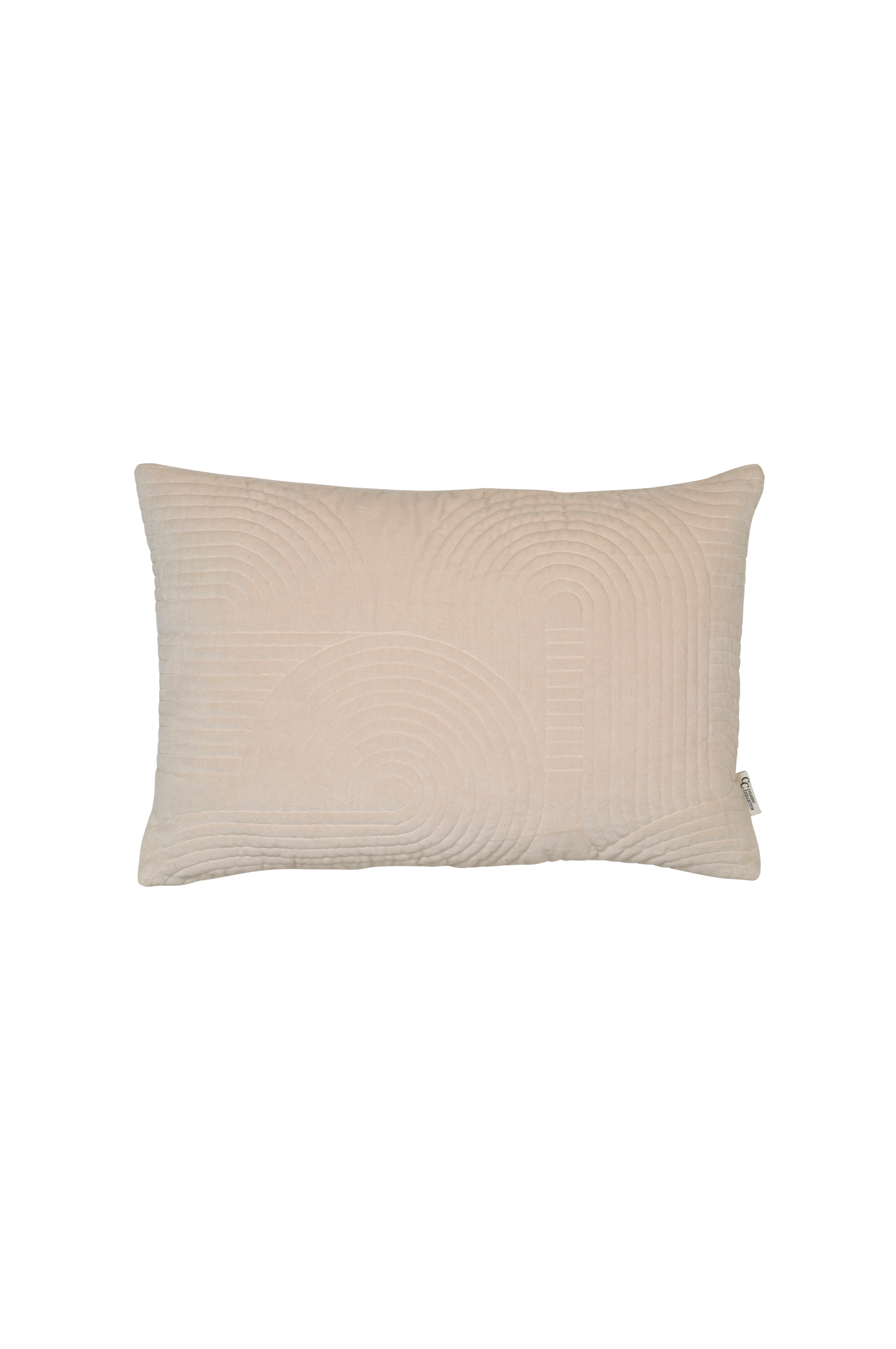 Putetrekk Arch er en serie putetrekk i ensfarget bomullsfløyel. Puten har et sydd mønster som forestiller buer. Baksiden er i glatt fløyel med glidelås i bunn.