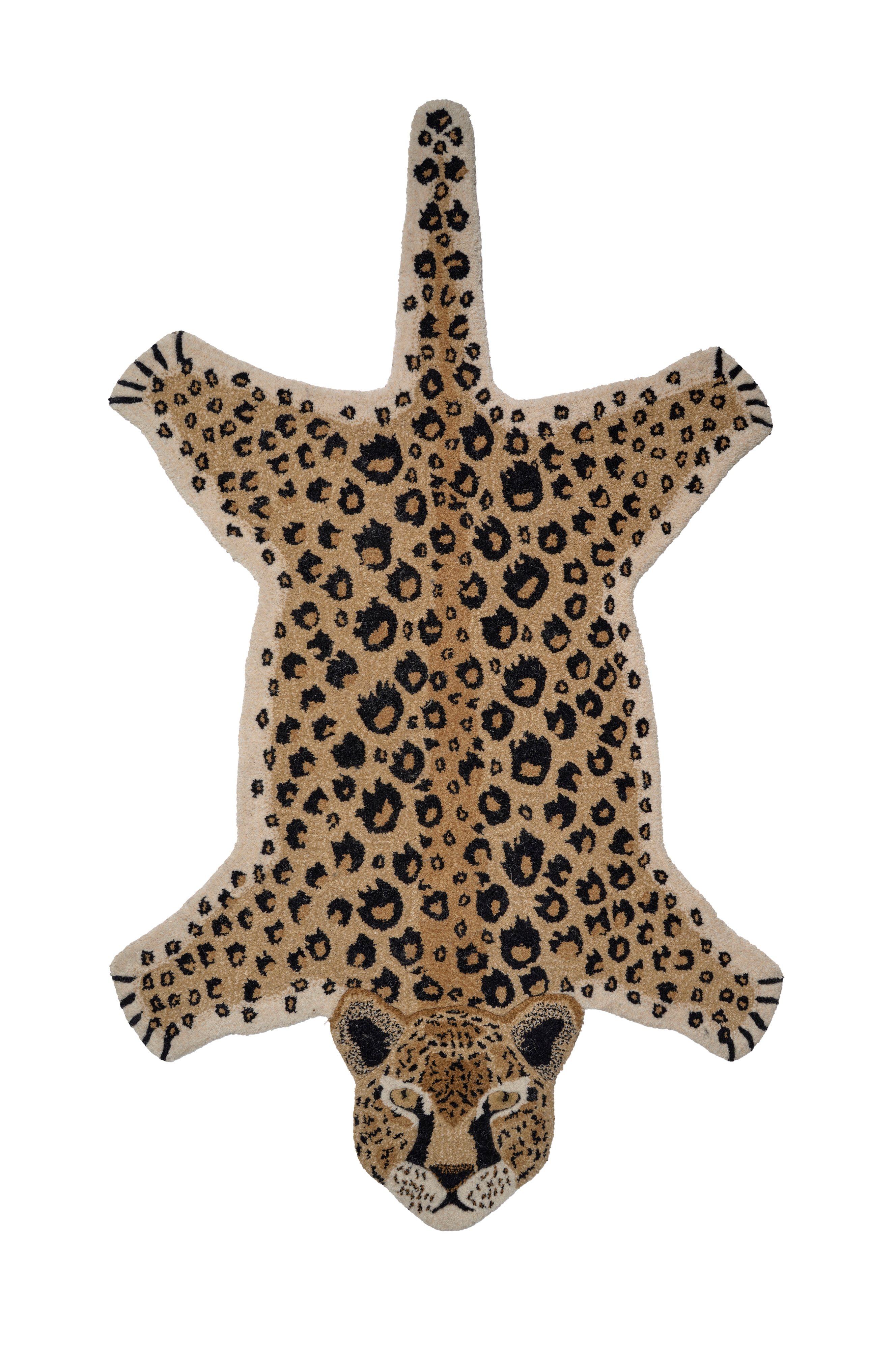 Teppe Leopard er et lite, håndtuftet ullteppe i form av en leopard. Teppet er en morsom detalj som passer like bra på barnerommet som i hallen eller eventuelt foran peisen.