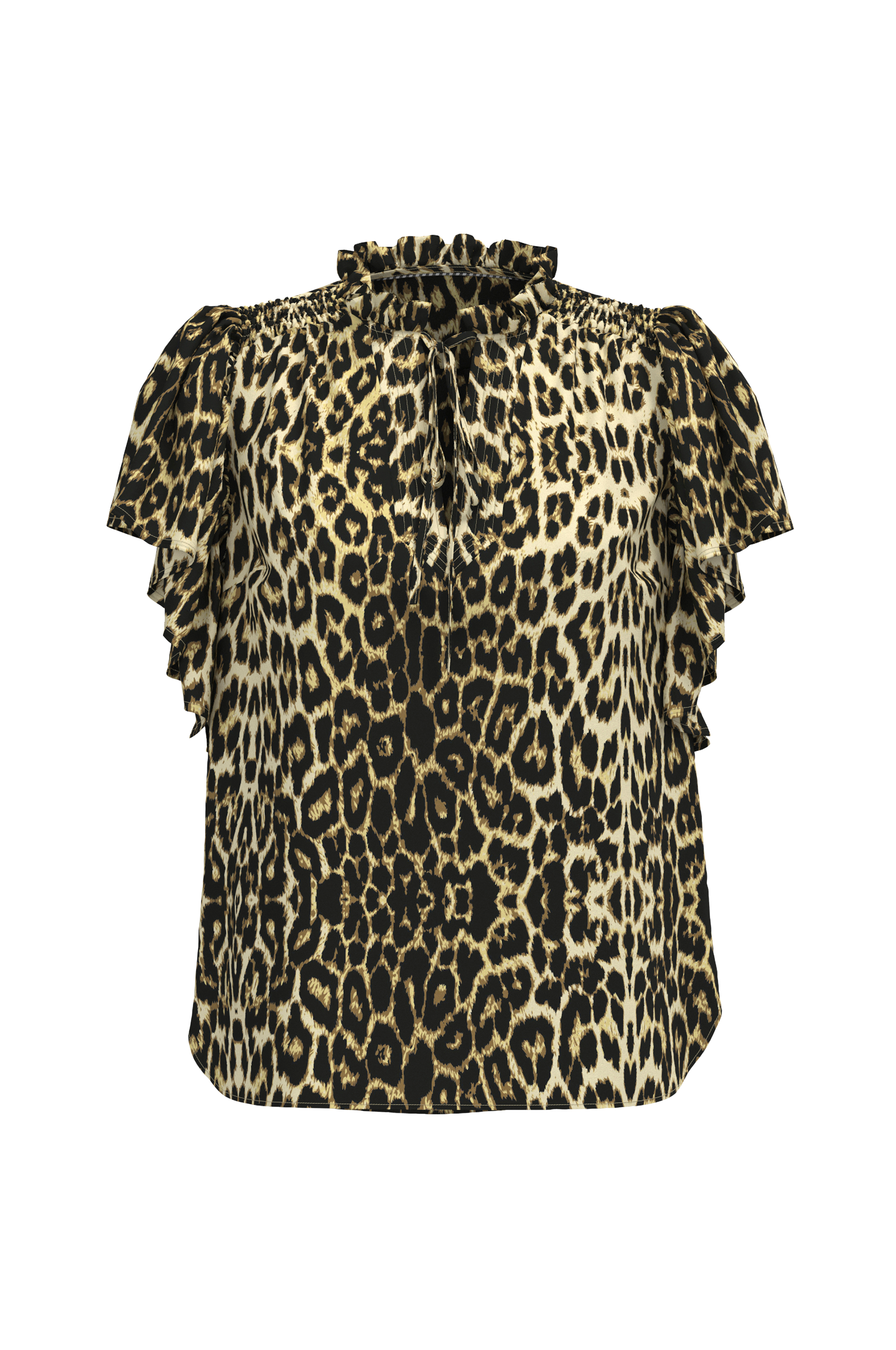 • Rett modell med vaffelsøm frem på skuldrene• Rund hals med volangkant og knytbar tråd foran• Bredt, klokkeformet erme