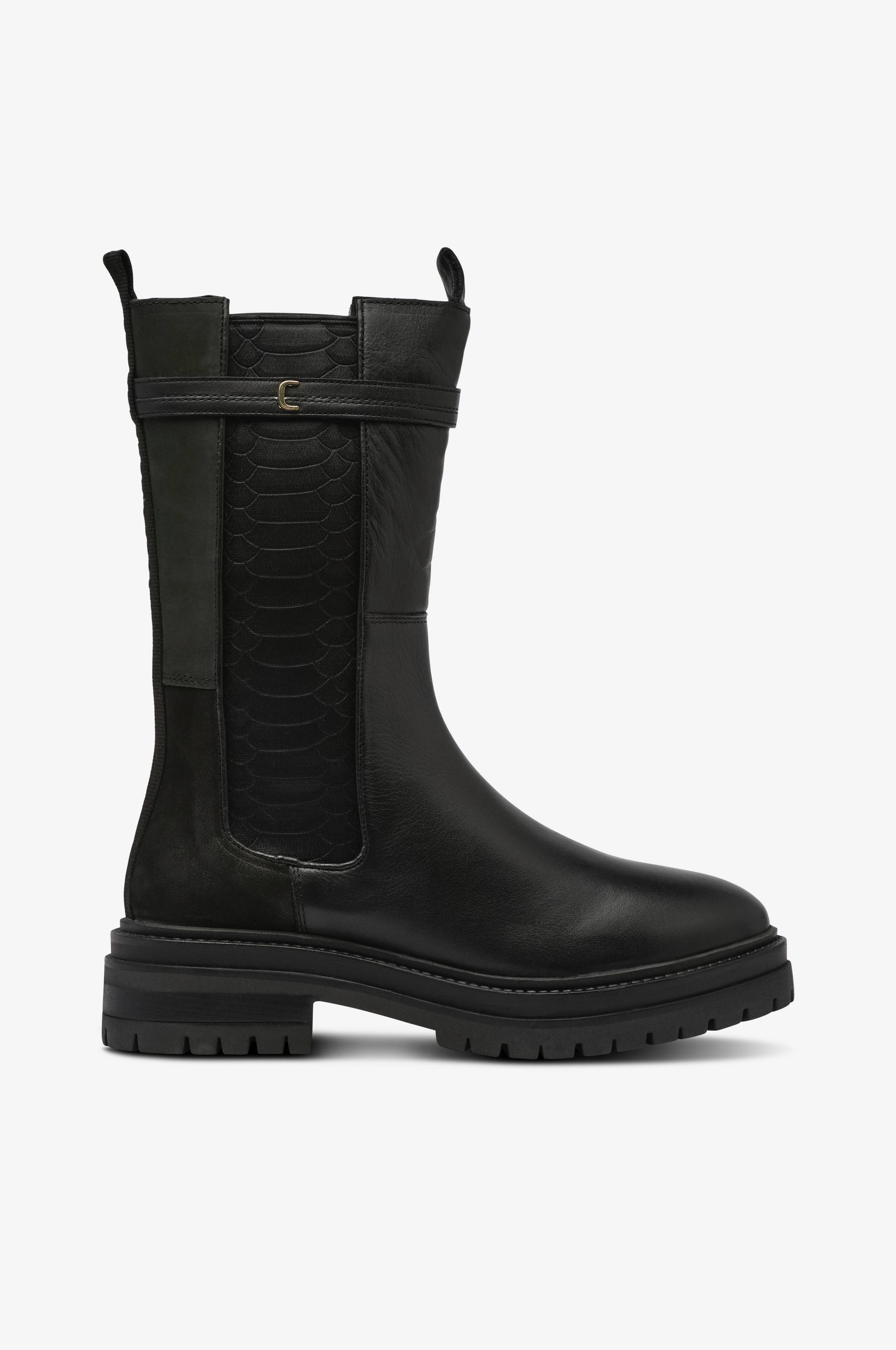 • Boots i skinn• Mønstrete elastiske paneler på begge sider av skaftet• Vevet draflik bak på skaftet• Tekstilfôr• Skinnkledd innersåle• Yttersåle i gummi• Skafthøyde: 23 cm i størrelse 37