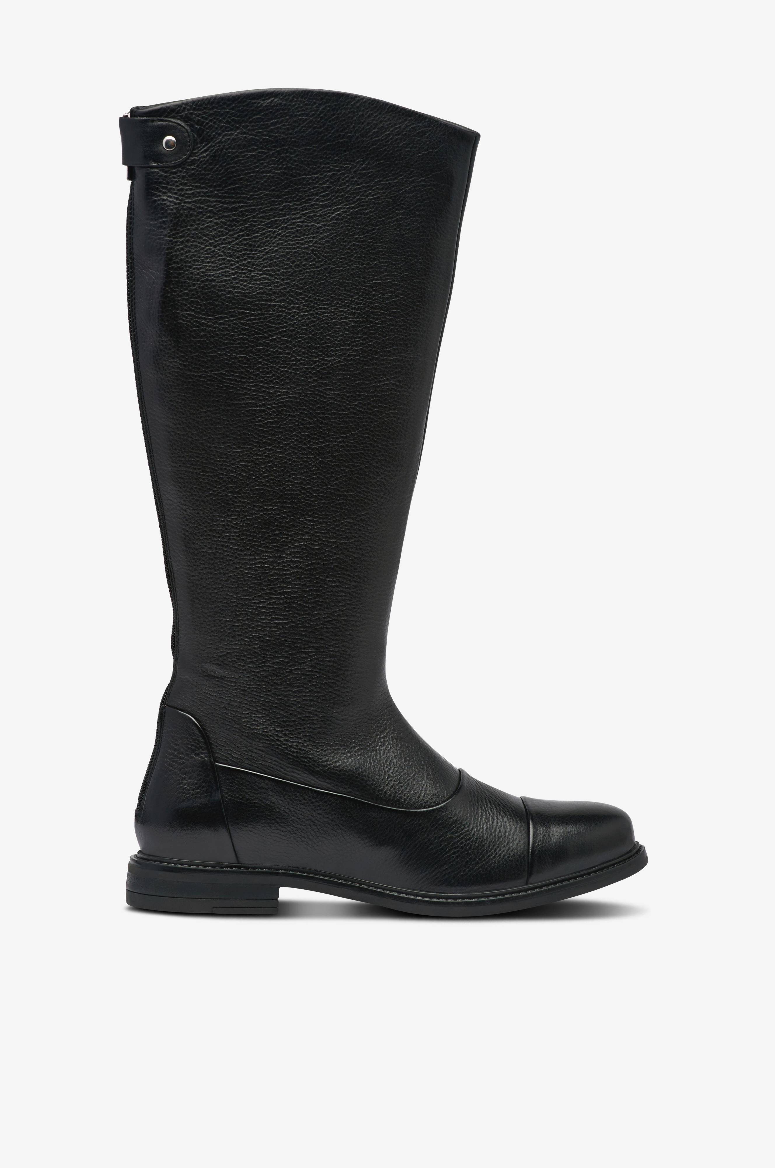 • Støvler i skinn• Stroppdetalj• Dekorativ glidelås bak på skaftet• Glidelås på innsiden av skaftet• Varmende foring• Yttersåle i syntet• Skafthøyde: 38 cm i størrelse 37