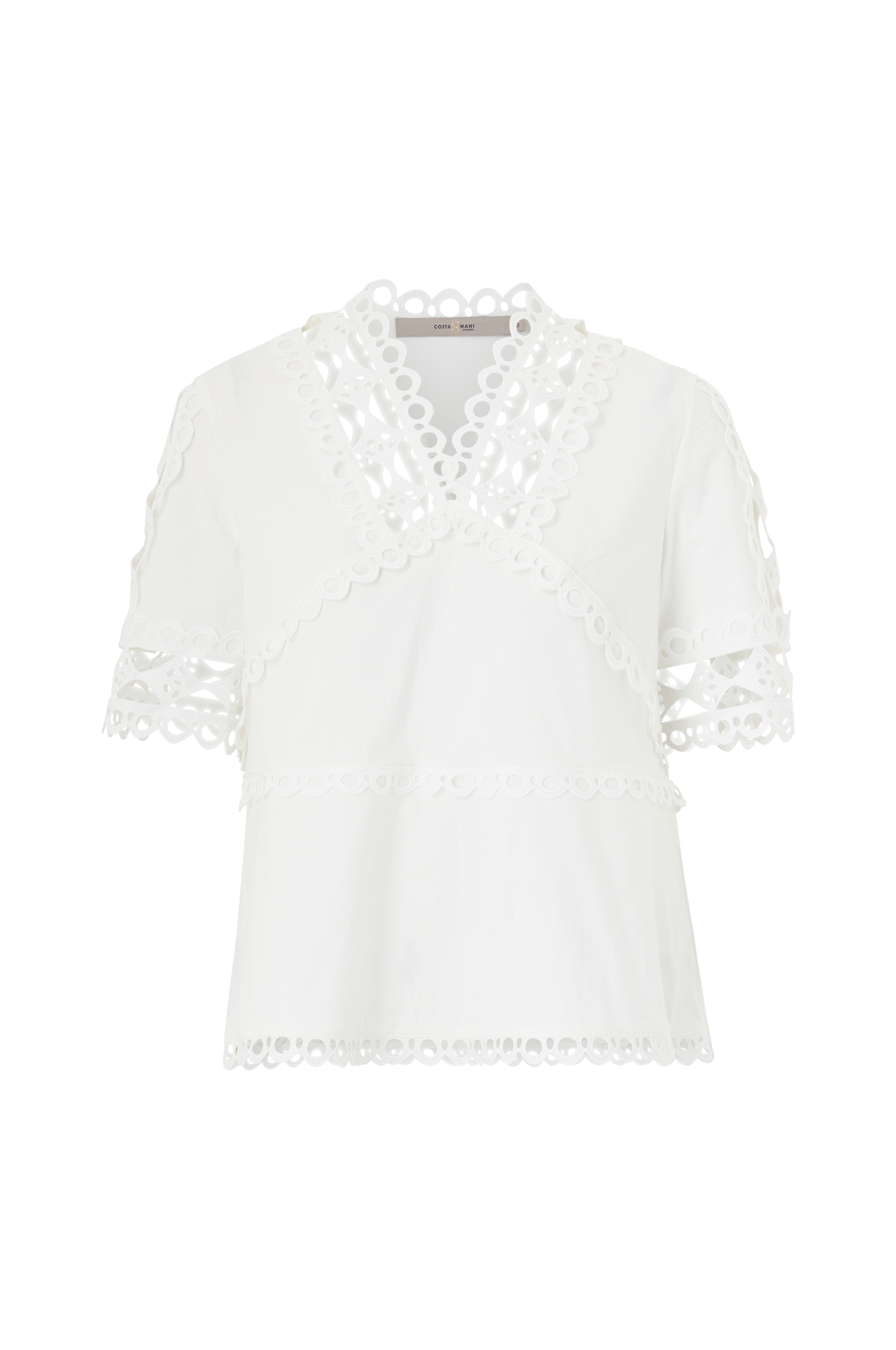 • Utsvingt modell med blondeinnfellinger• V-formet hals• Kort, utsvingt erme