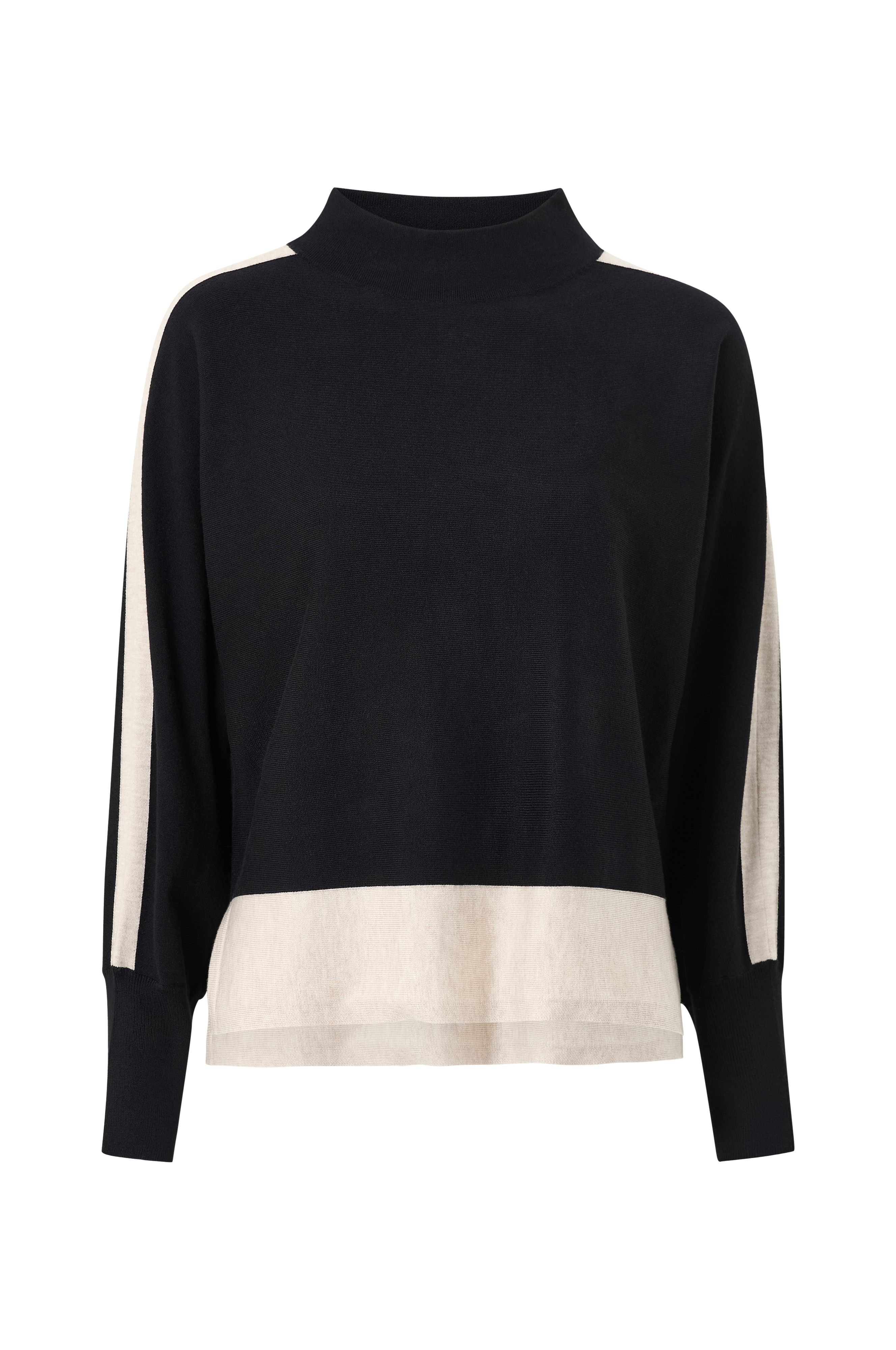 • Lange ermer med brede ribbet mansjetter i ermeslutten