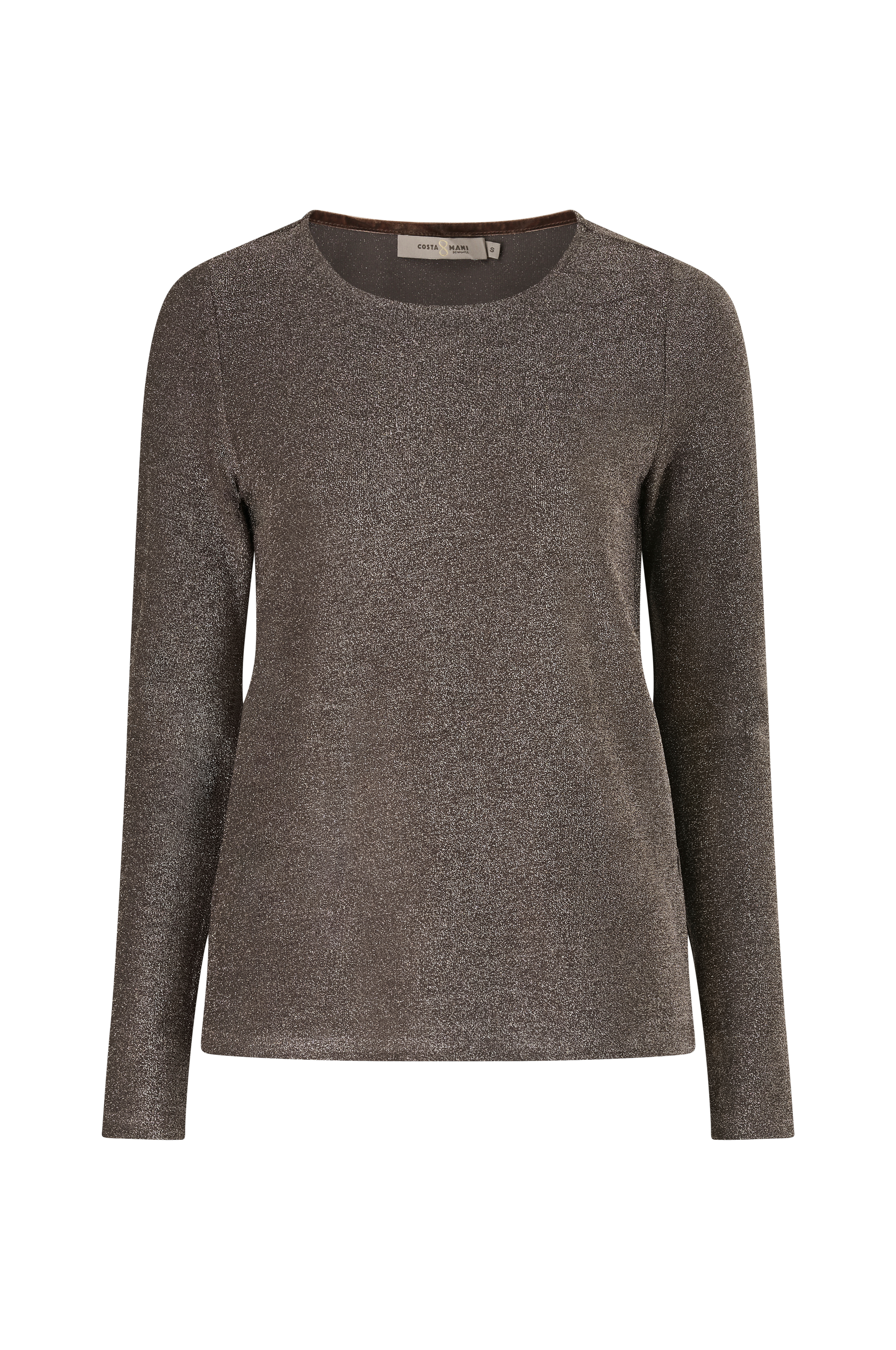 • Glitrende, stretchy topp• Rund hals• Lange ermer• Skjær nede i sidene