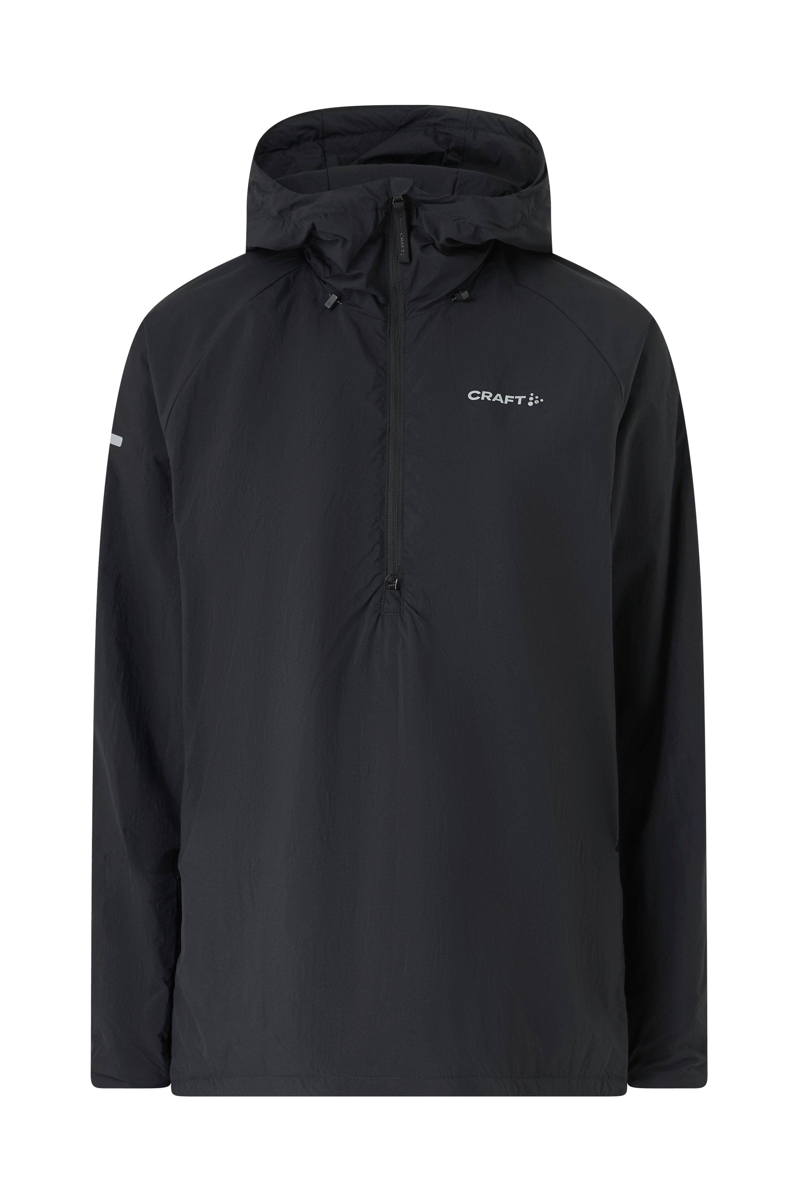• Lett polstret anorakk • Lett skrukket struktur • Høy krage med snøring • Fast hette • Gummistrikk i ermeslutten • Kort glidelås foran • Glidelås nedtil på ene siden • Litt lengre backing • Refleksdetaljer • Vind- og vanntett • Lengde: 75 cm i størrelse S
